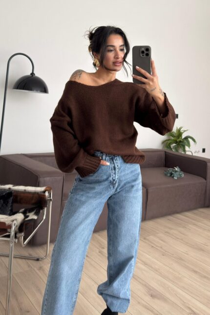 Arkası Dantel Detaylı Kazak Kahverengi