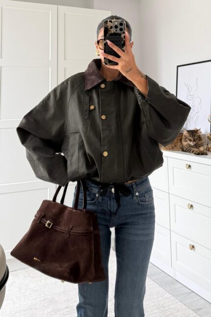 Beli Ayarlanabilir Kadife Yaka Ceket Haki