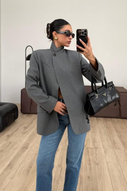 Tek Düğmeli Dik Yakalı Ceket Antrasit