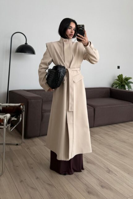 Kemer Detaylı Fitilli Dik Yakalı Bomber Ceket Bej