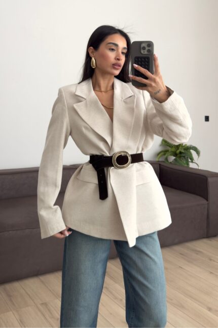 Orijinal fiyat: 1,799.90 ₺.1,399.90 ₺Şu andaki fiyat: 1,399.90 ₺.Lona Yanları Büzgülü Blazer Ceket Ekru