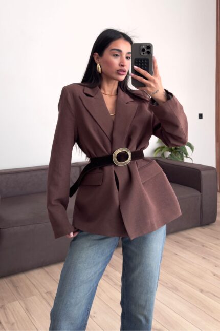 Orijinal fiyat: 999.90 ₺.699.90 ₺Şu andaki fiyat: 699.90 ₺.Önü Yırtmaçlı Keten Blazer Ceket Kahverengi