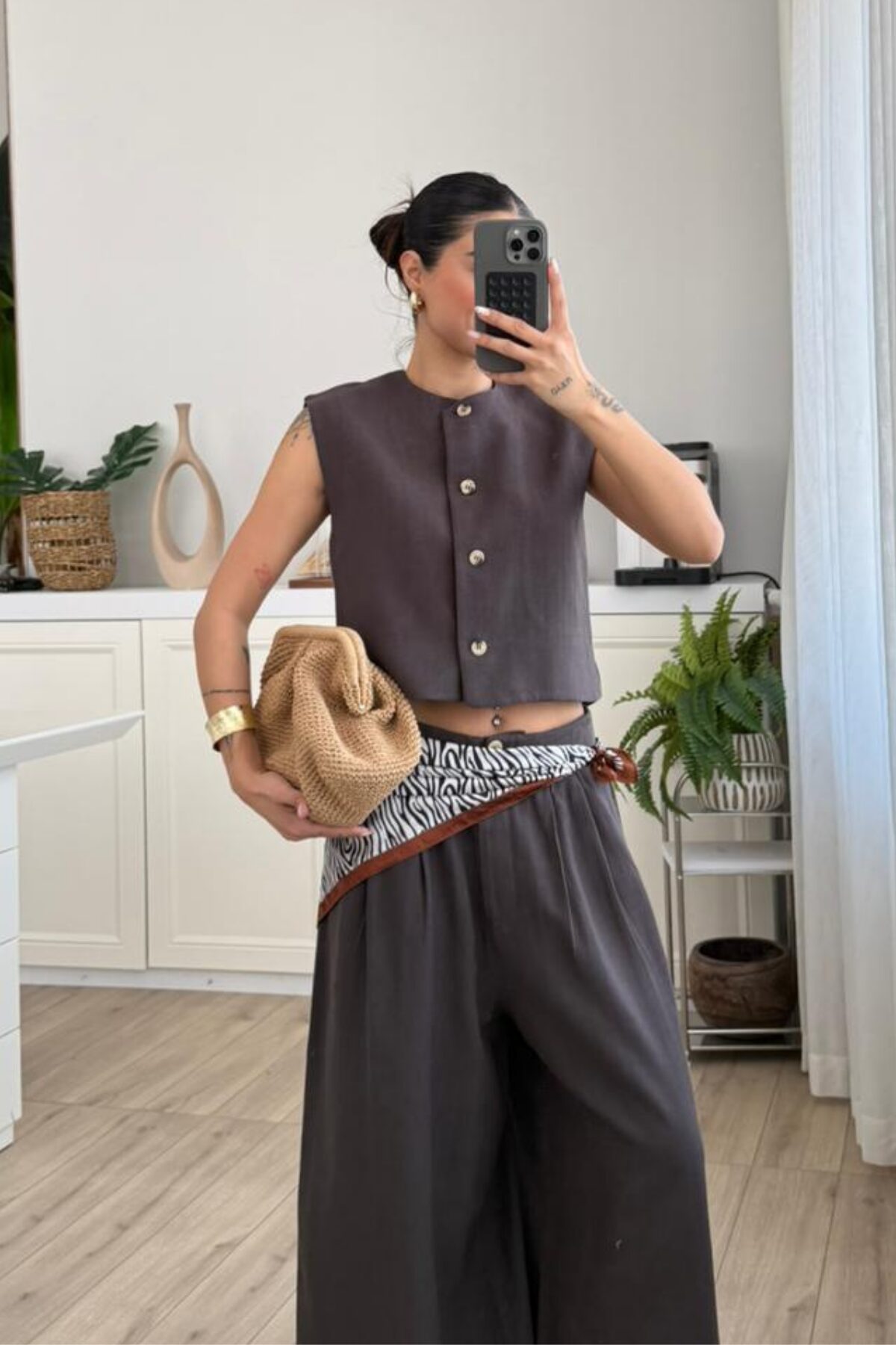 Nora Düğmeli Yelek Kahverengi