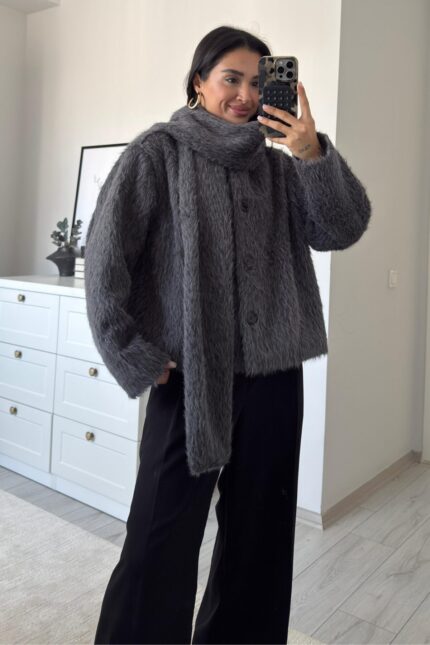 Cep Detaylı Belden oturtmalı Kaşe Ceket Antrasit