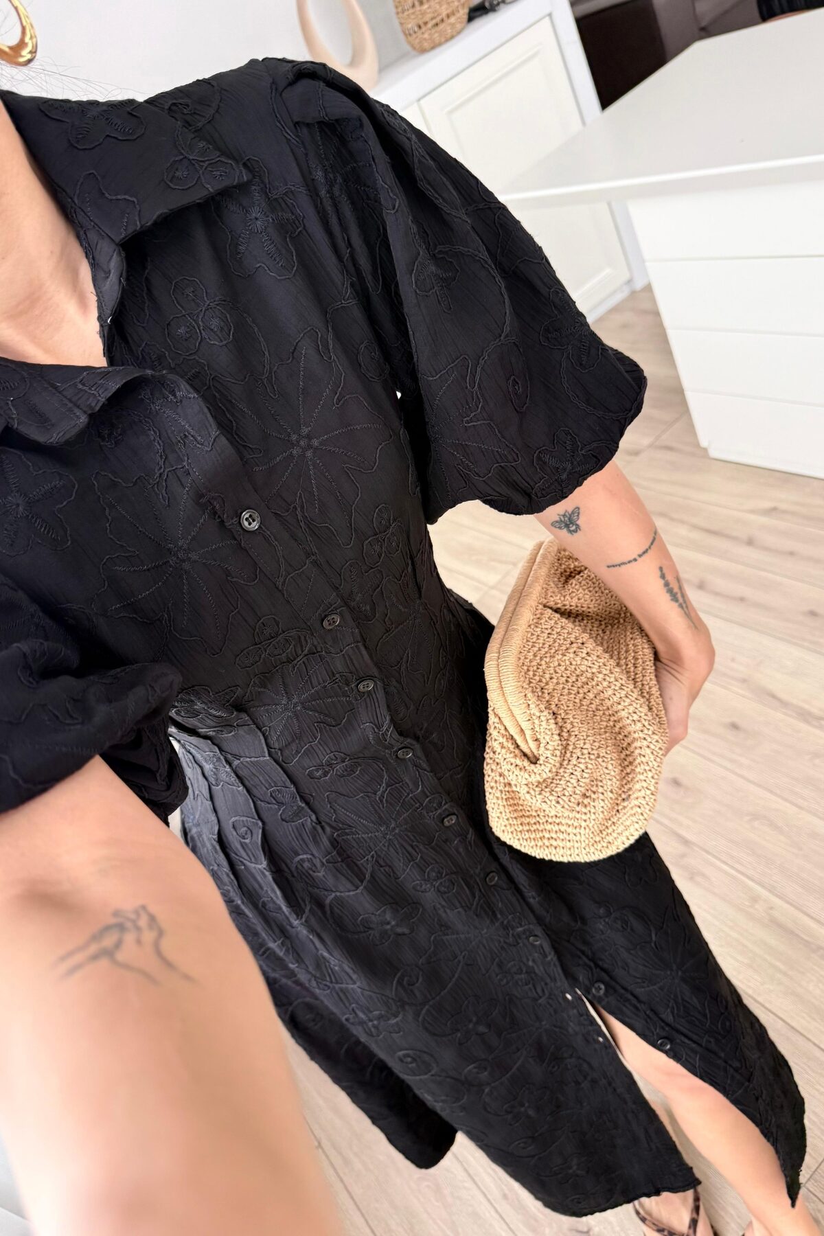 “Çiçek Nakışlı Uzun Gömlek Elbise Siyah” için yorum yapan ilk kişi siz olun