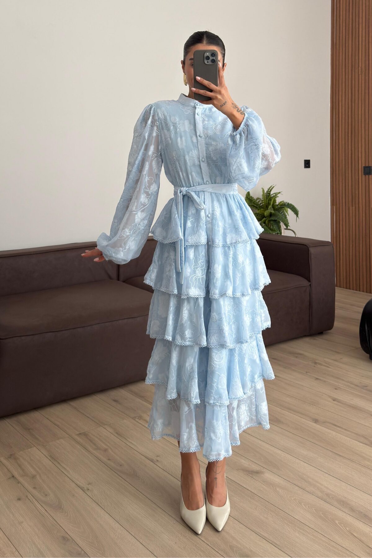 Kat Kat Volanlı Tül Elbise Bebe Mavi