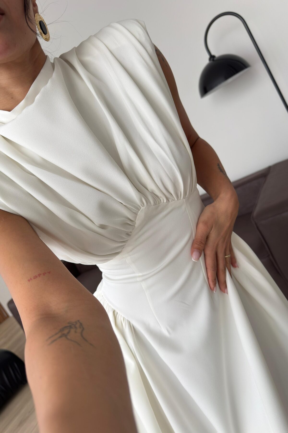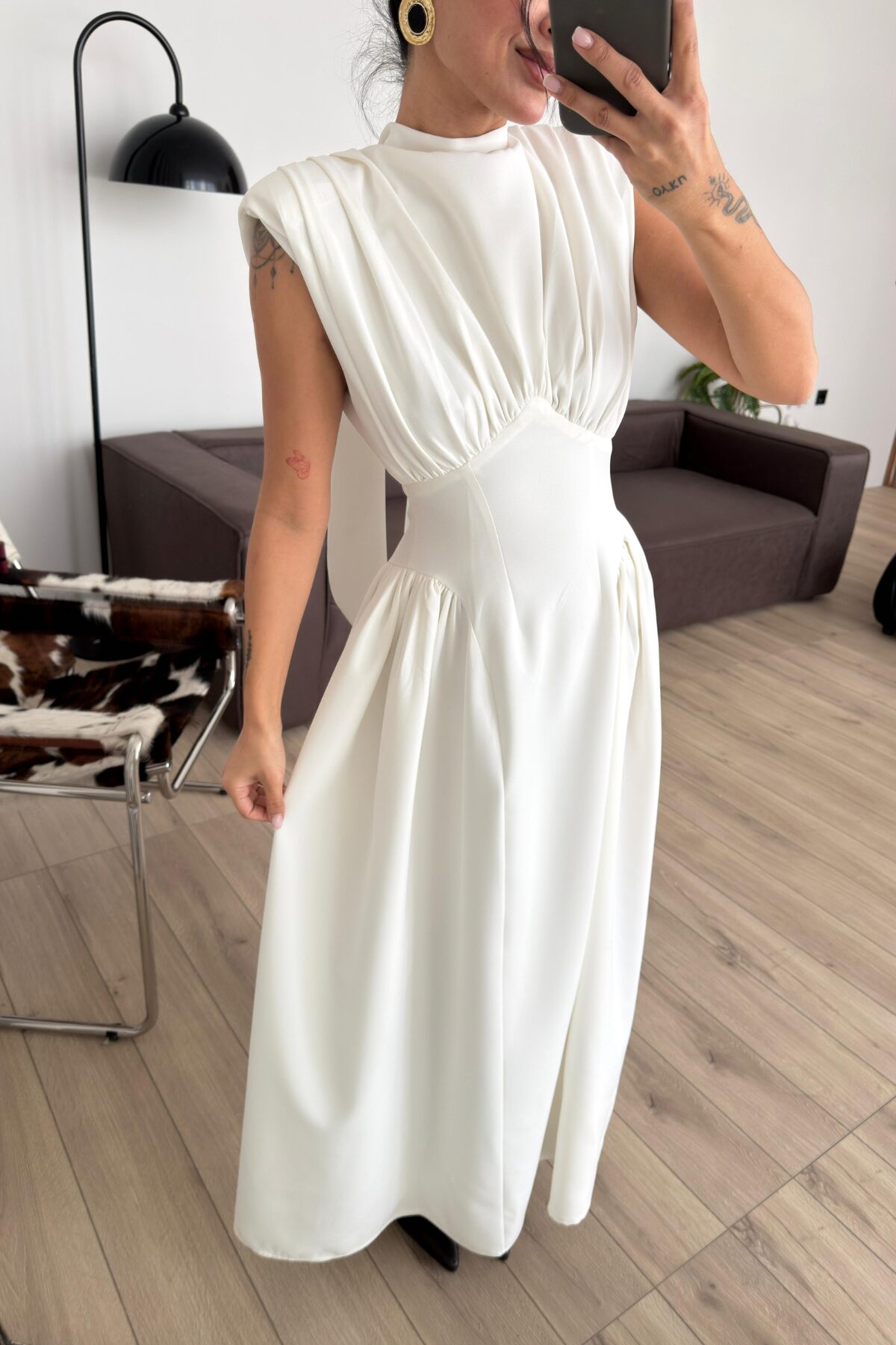 Lou Vatkalı Belden Oturtmalı Elbise Beyaz