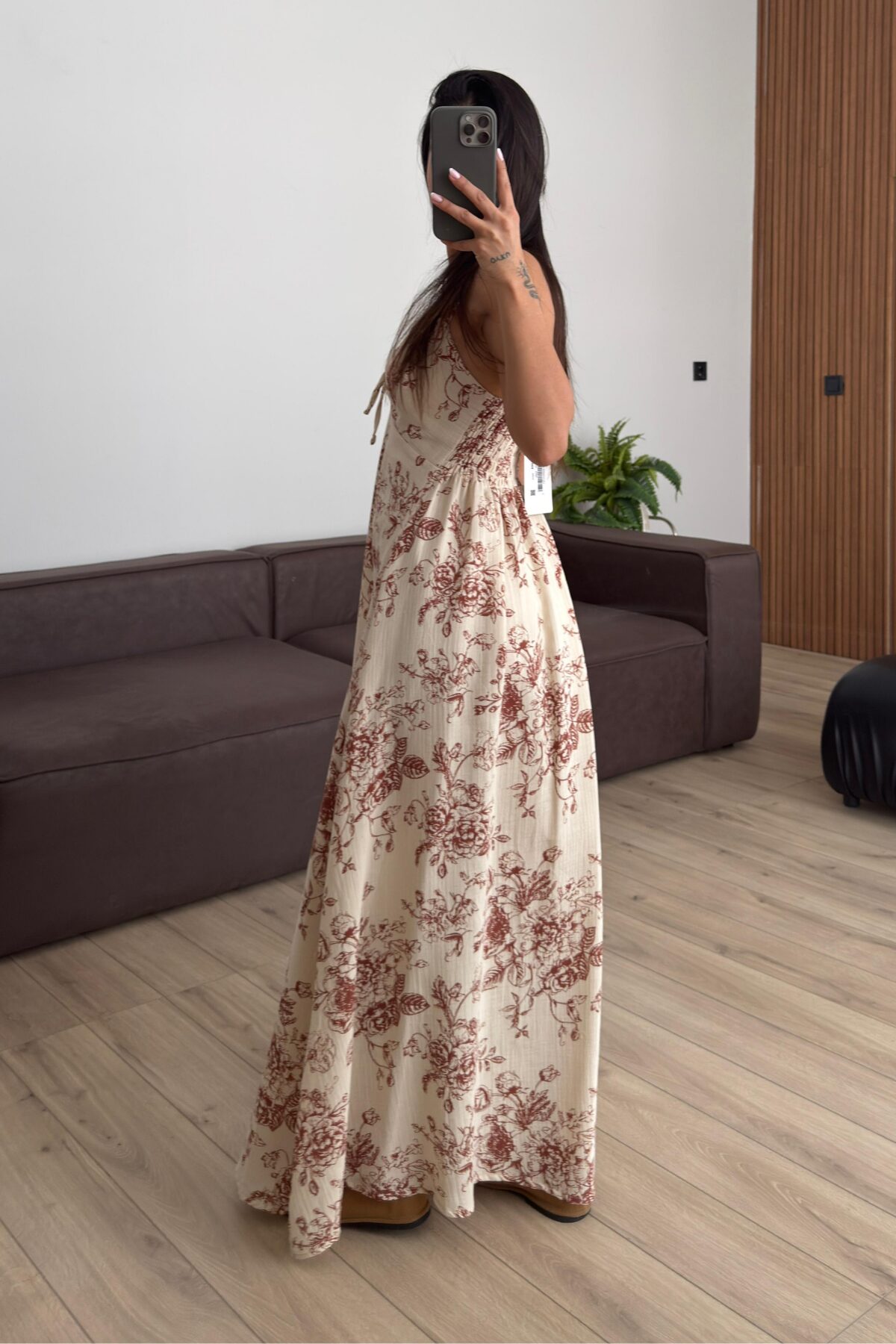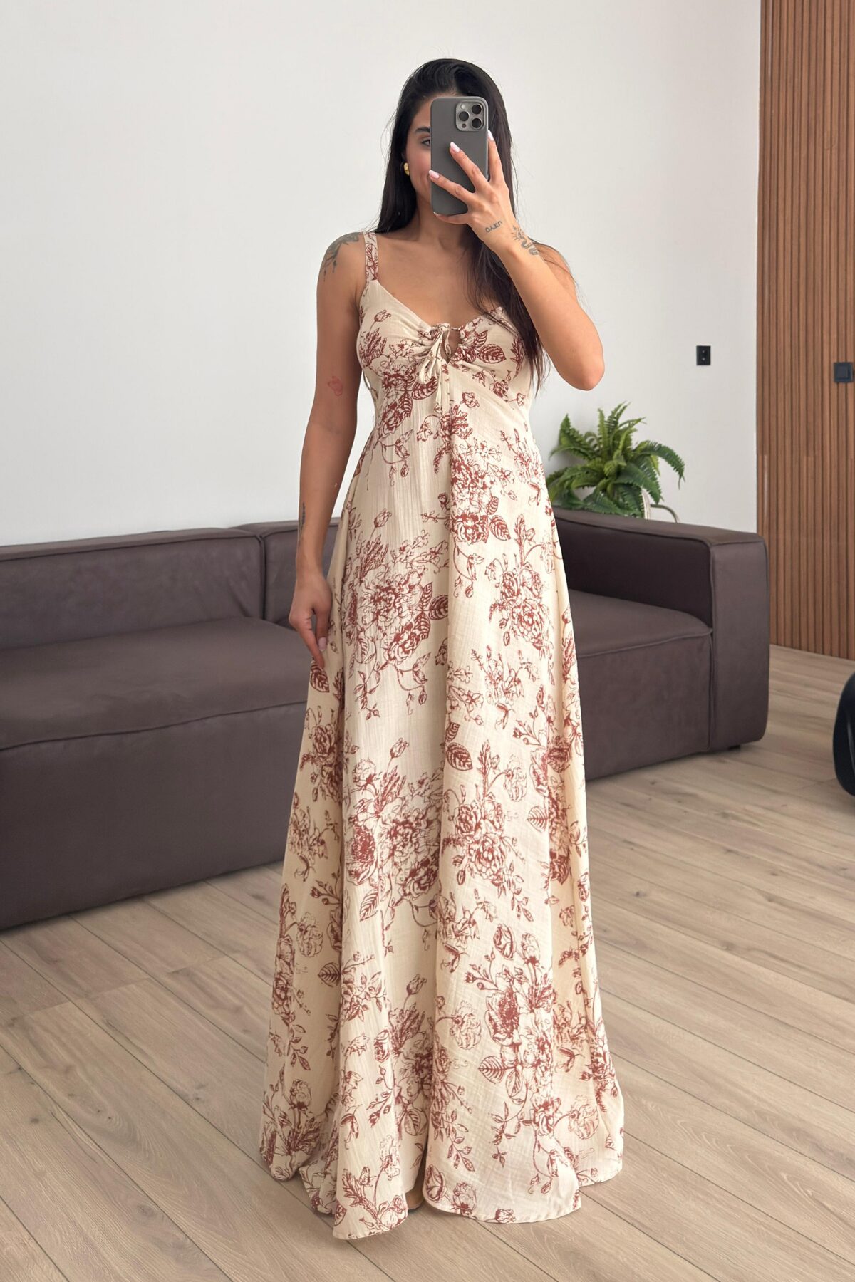 “Önü Yırtmaçlı Gül Desenli Elbise Kahverengi” için yorum yapan ilk kişi siz olun