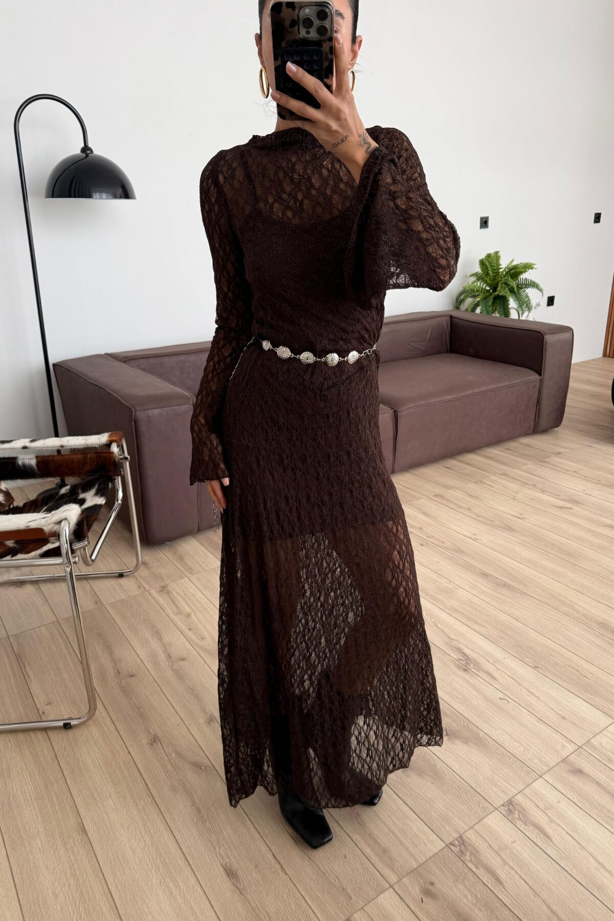 “Zincir Kemerli Dantel Elbise Kahverengi” için yorum yapan ilk kişi siz olun