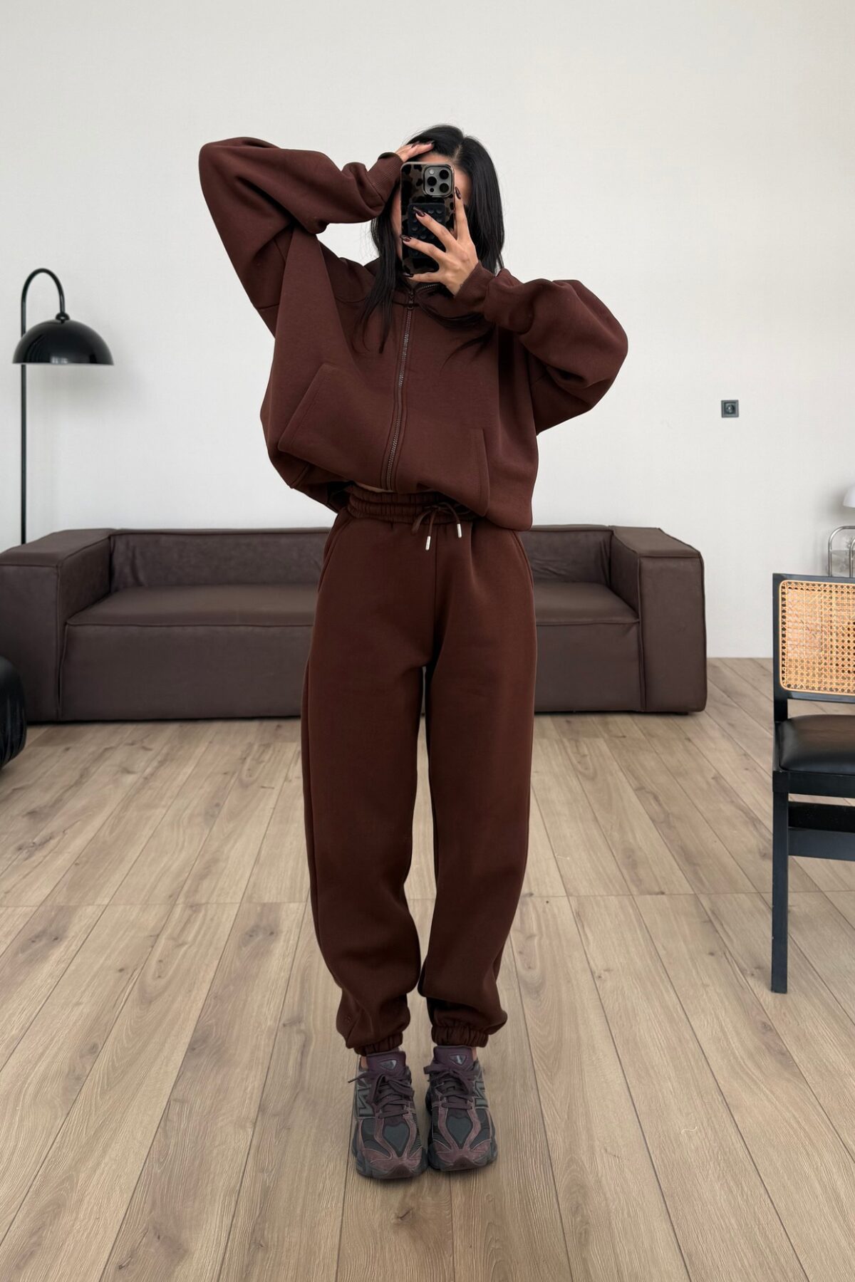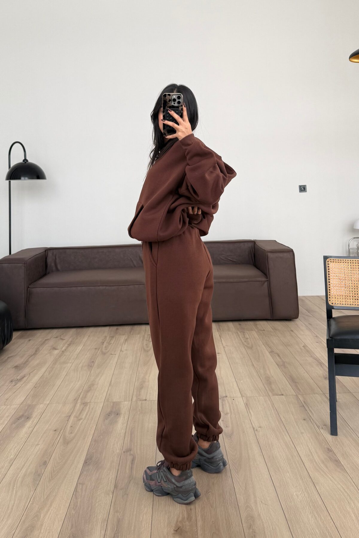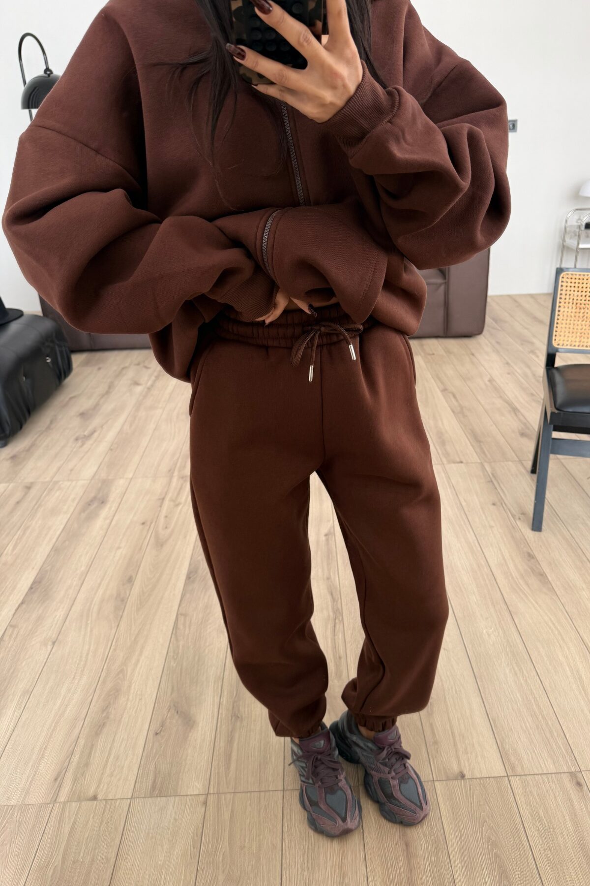 Paçası Lastikli Eşofman Altı Kahverengi