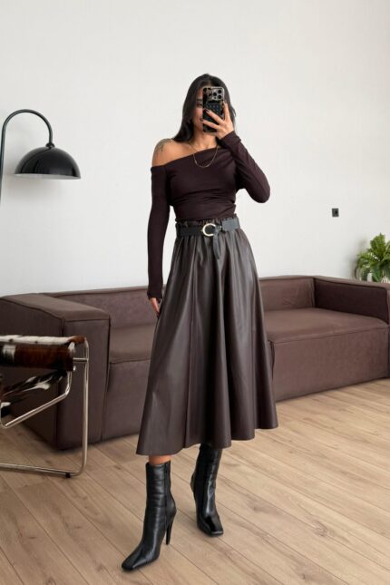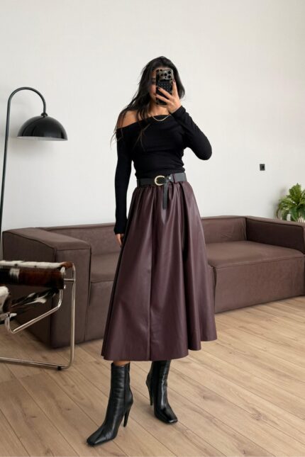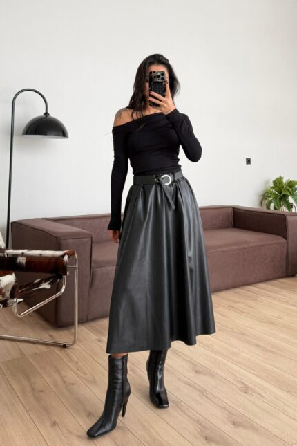 Önü Yırtmaçlı Beli kemerli Kot Etek