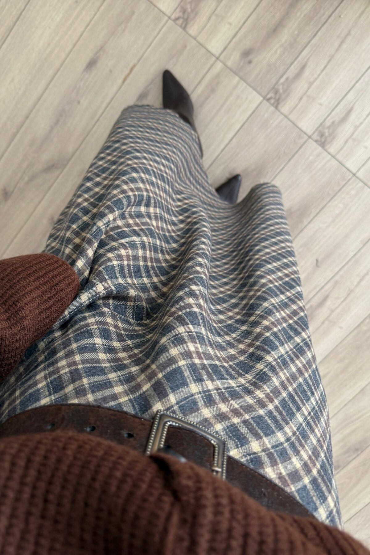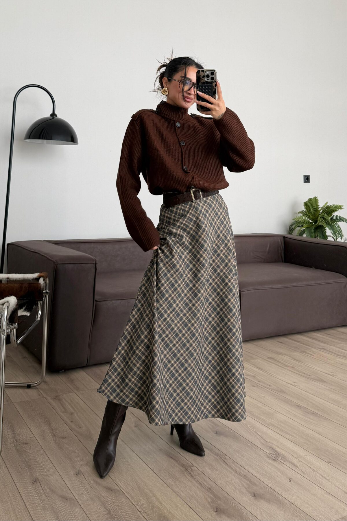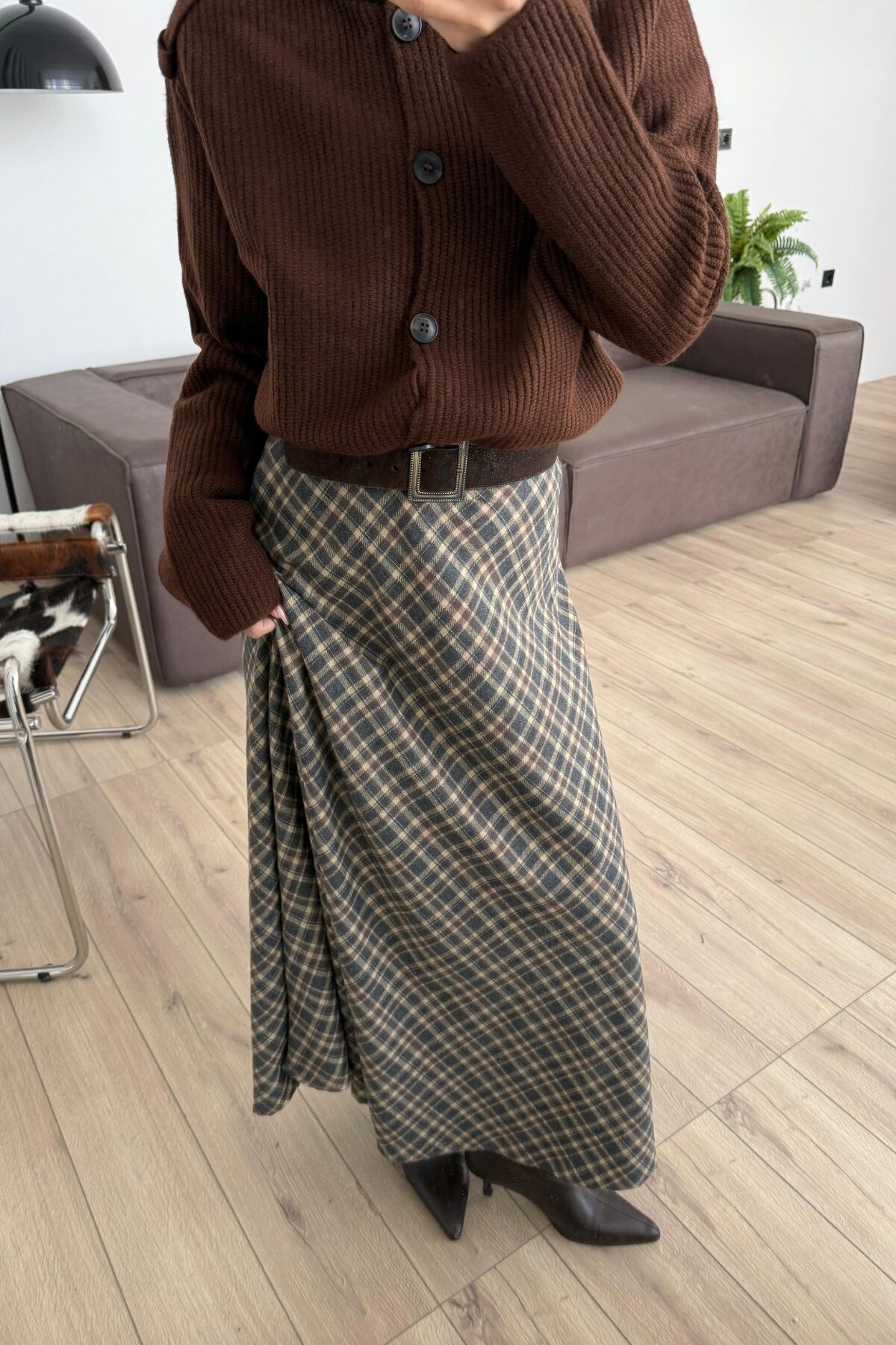 Fire Ekose Desenli Etek Antrasit Kahve