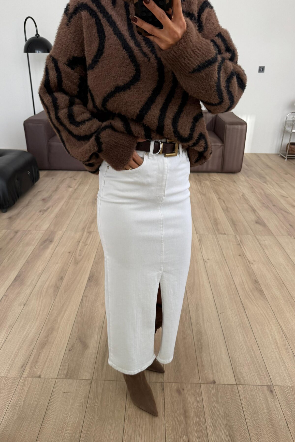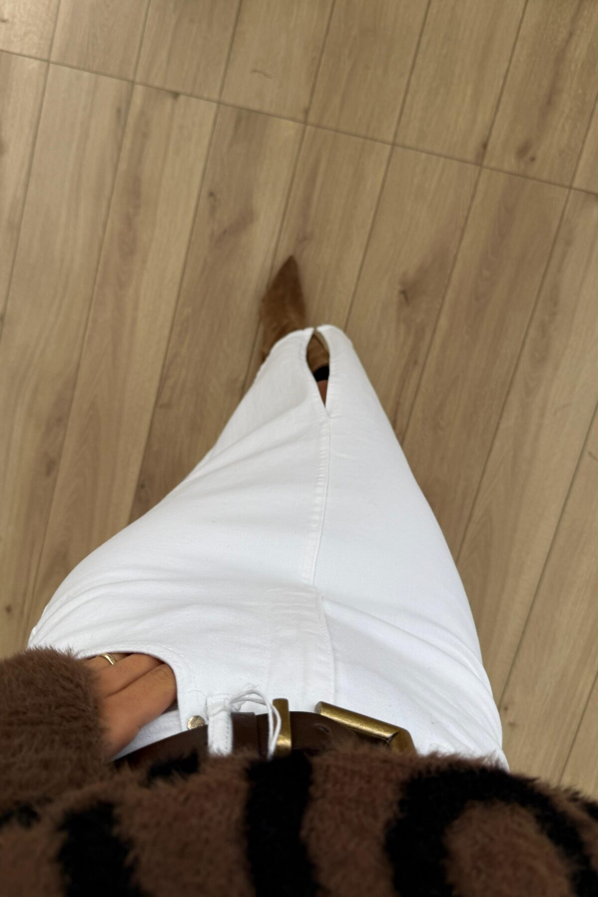“Önü Yırtmaçlı Beyaz Kot Etek” için yorum yapan ilk kişi siz olun