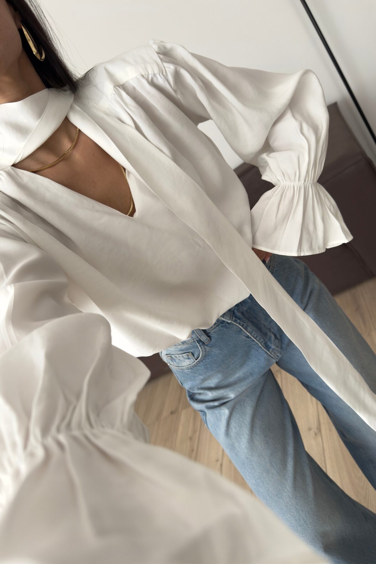 “Boyundan Bağlamalı Kolları Volanlı Bluz Beyaz” için yorum yapan ilk kişi siz olun