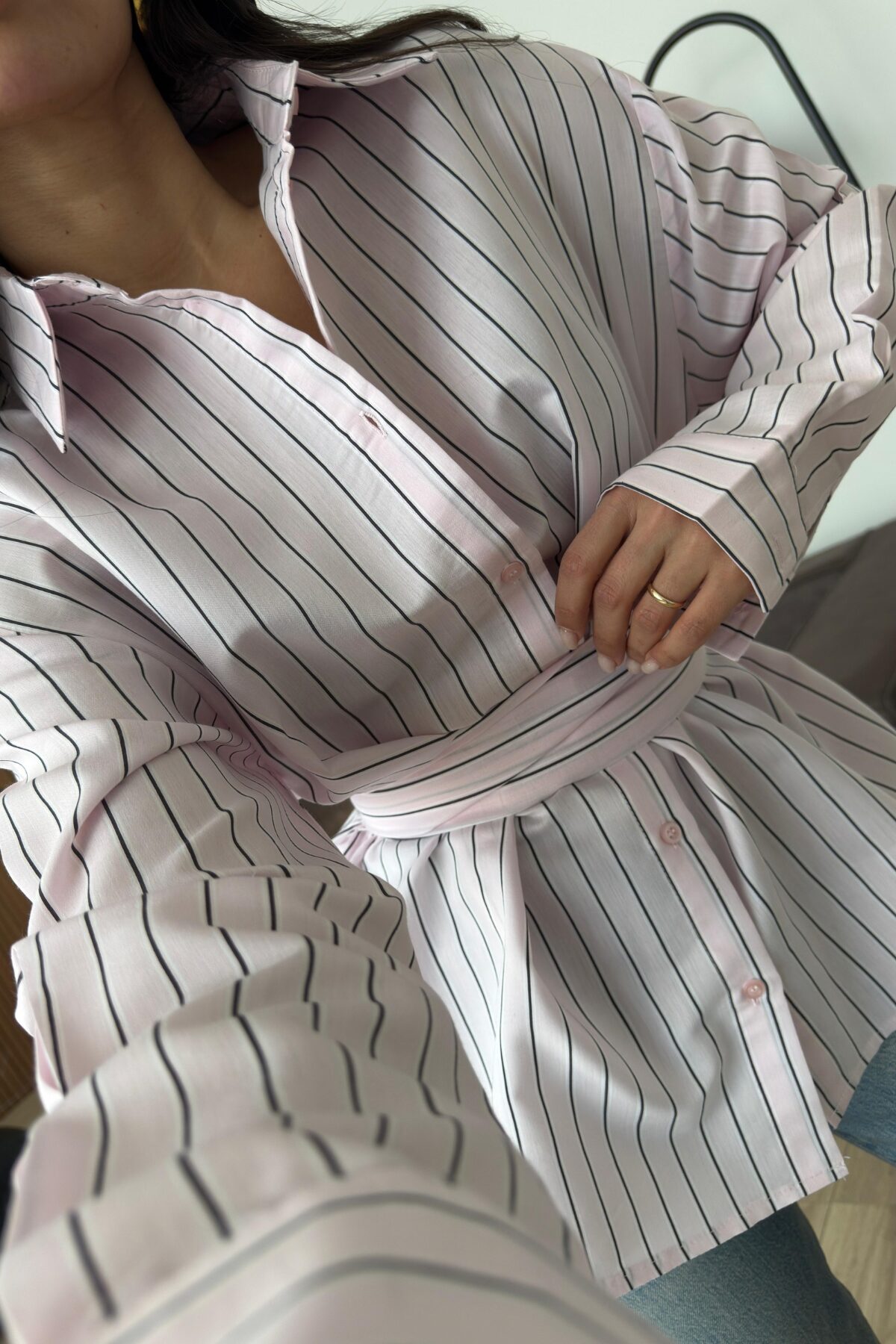 Çizgili Kuşaklı Poplin Gömlek Pembe