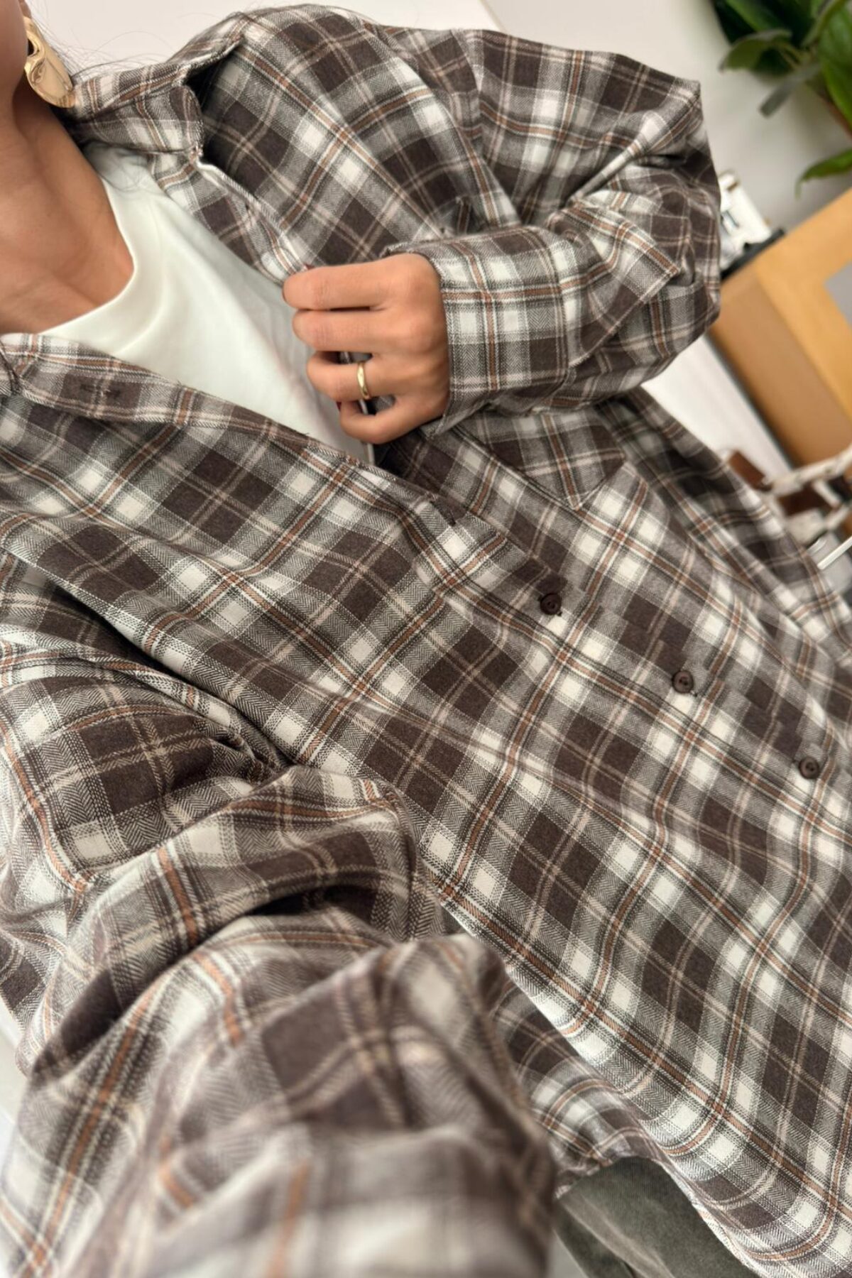 Ekose Oversize Oduncu Gömlek Kahve Beyaz