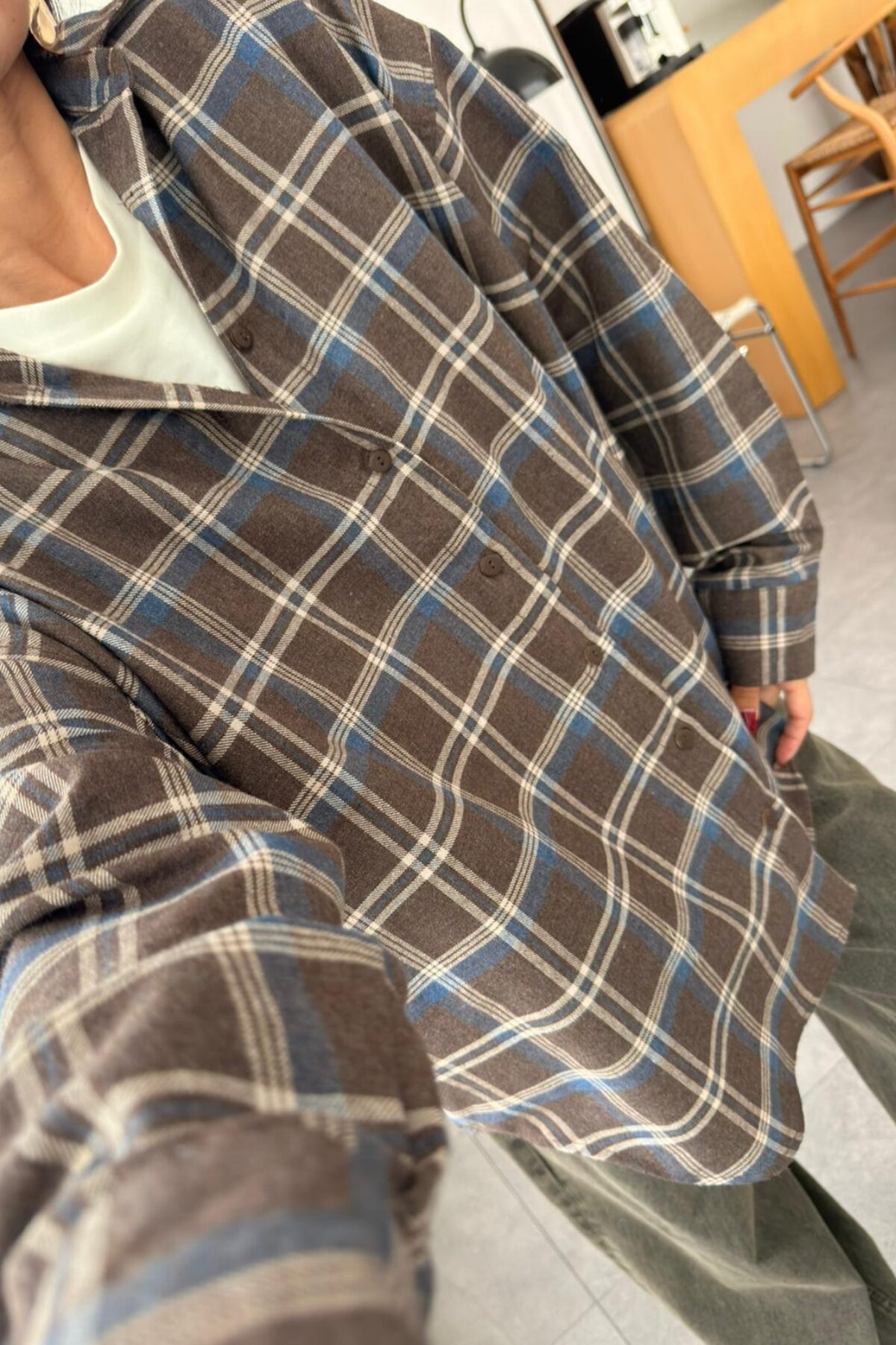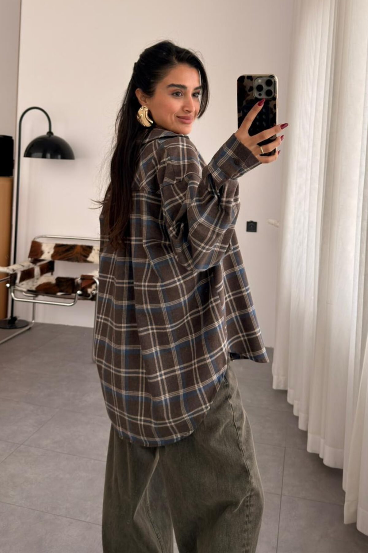 Ekose Oversize Oduncu Gömlek Kahve Lacivert