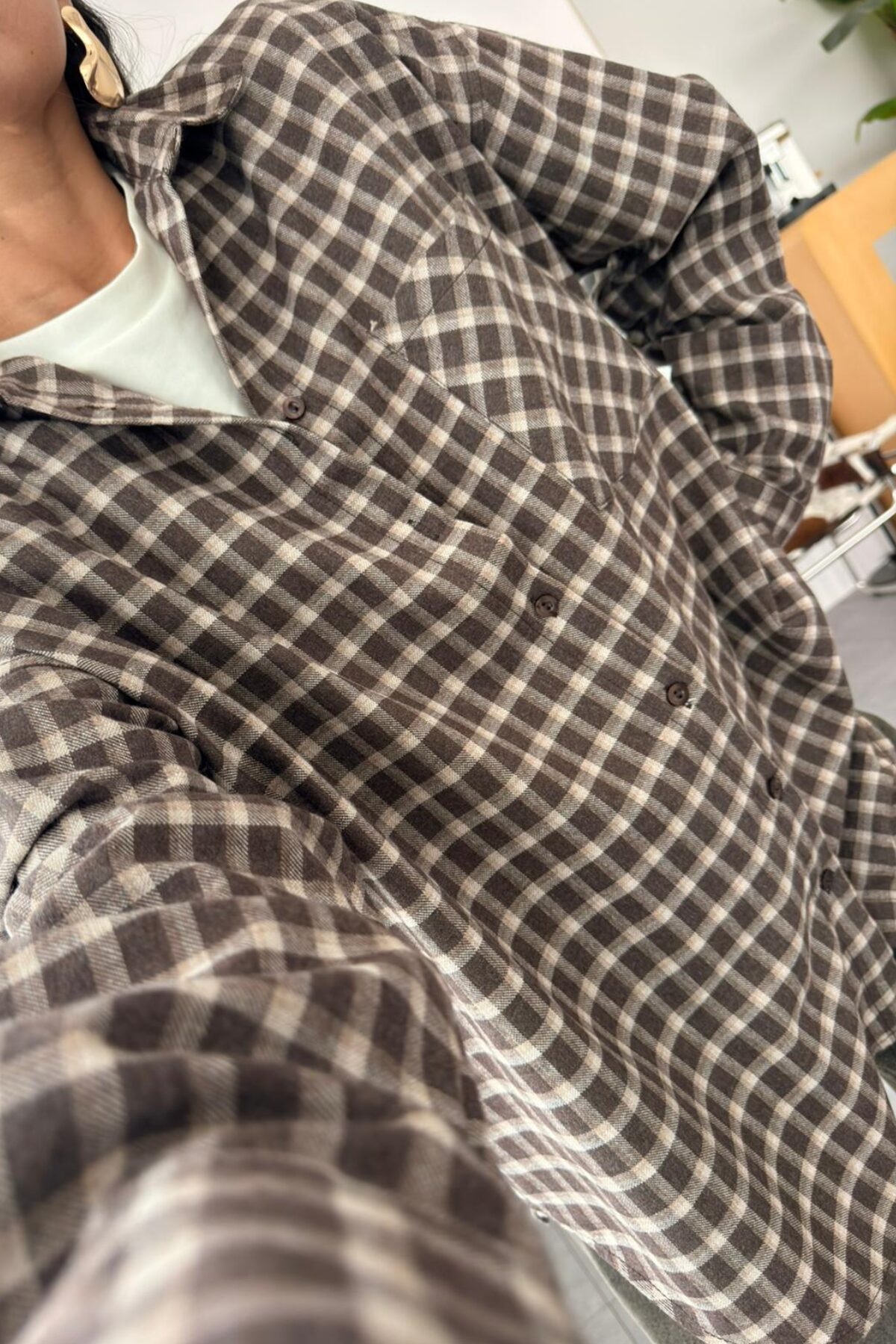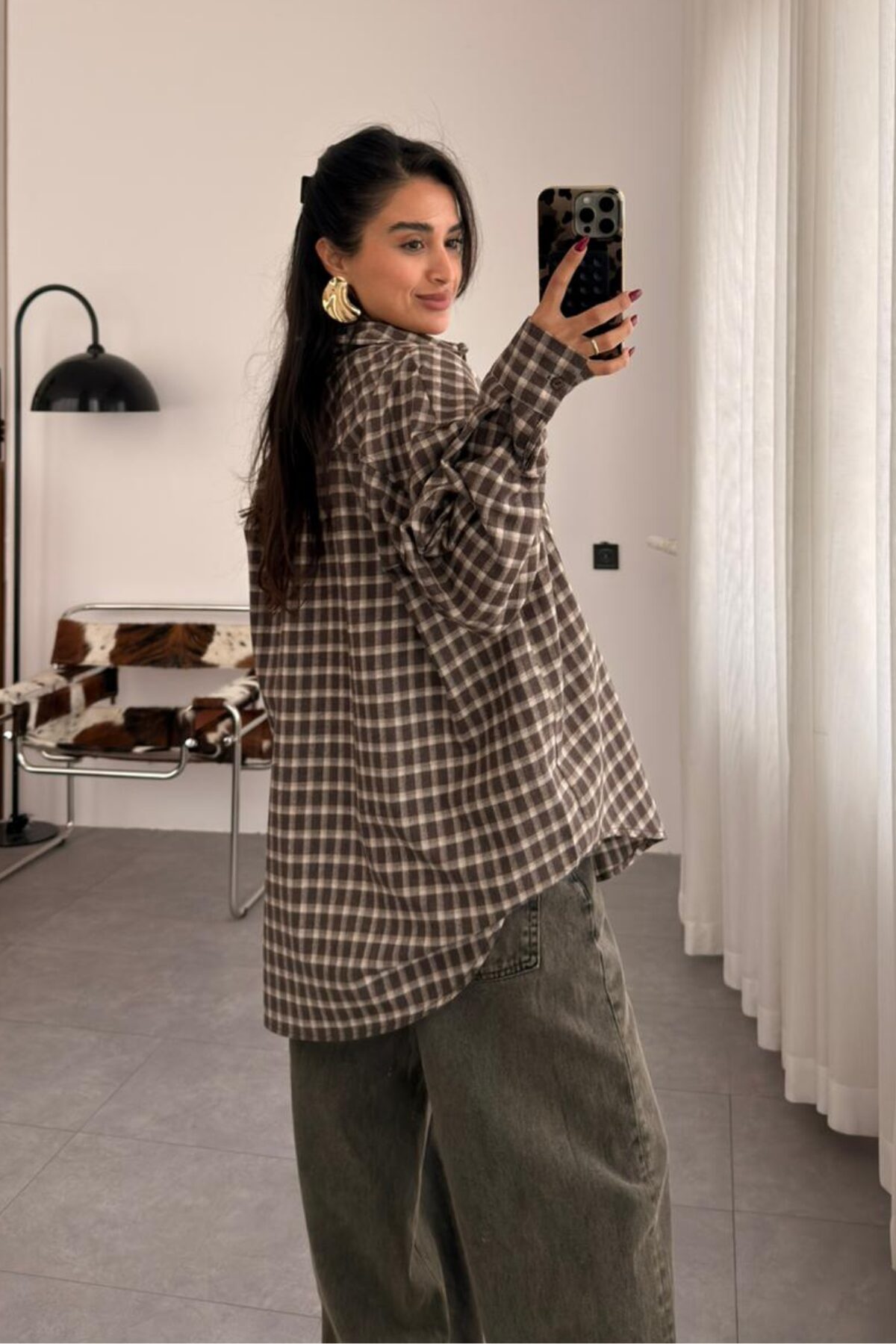 Ekose Oversize Oduncu Gömlek Kahve Taş