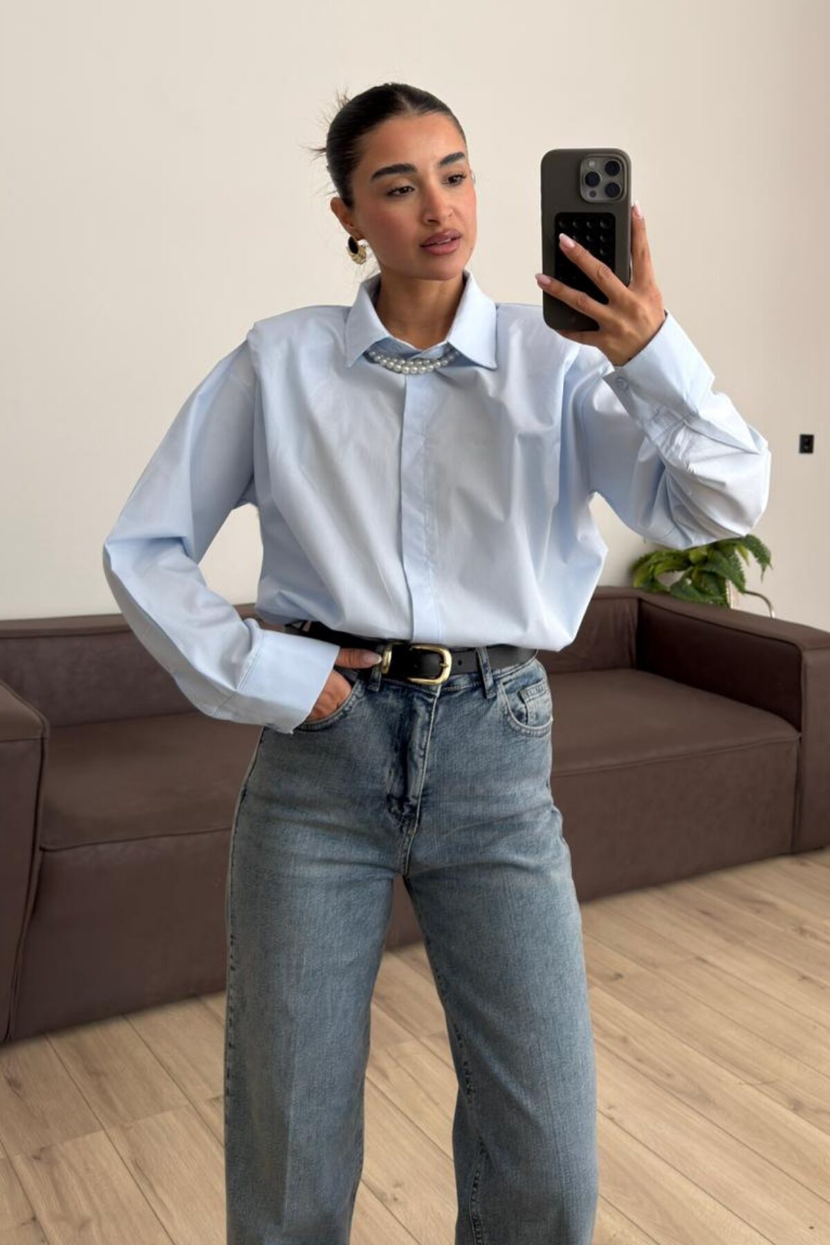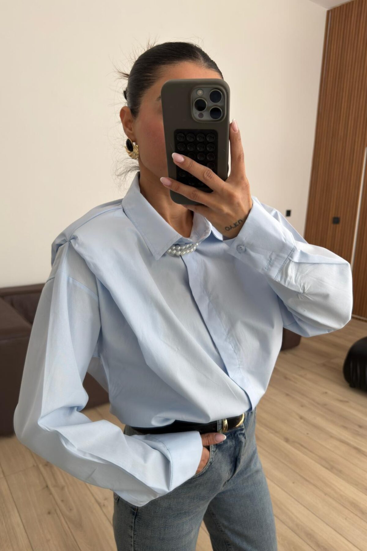 Gizli Düğmeli Vatkalı Gömlek Mavi