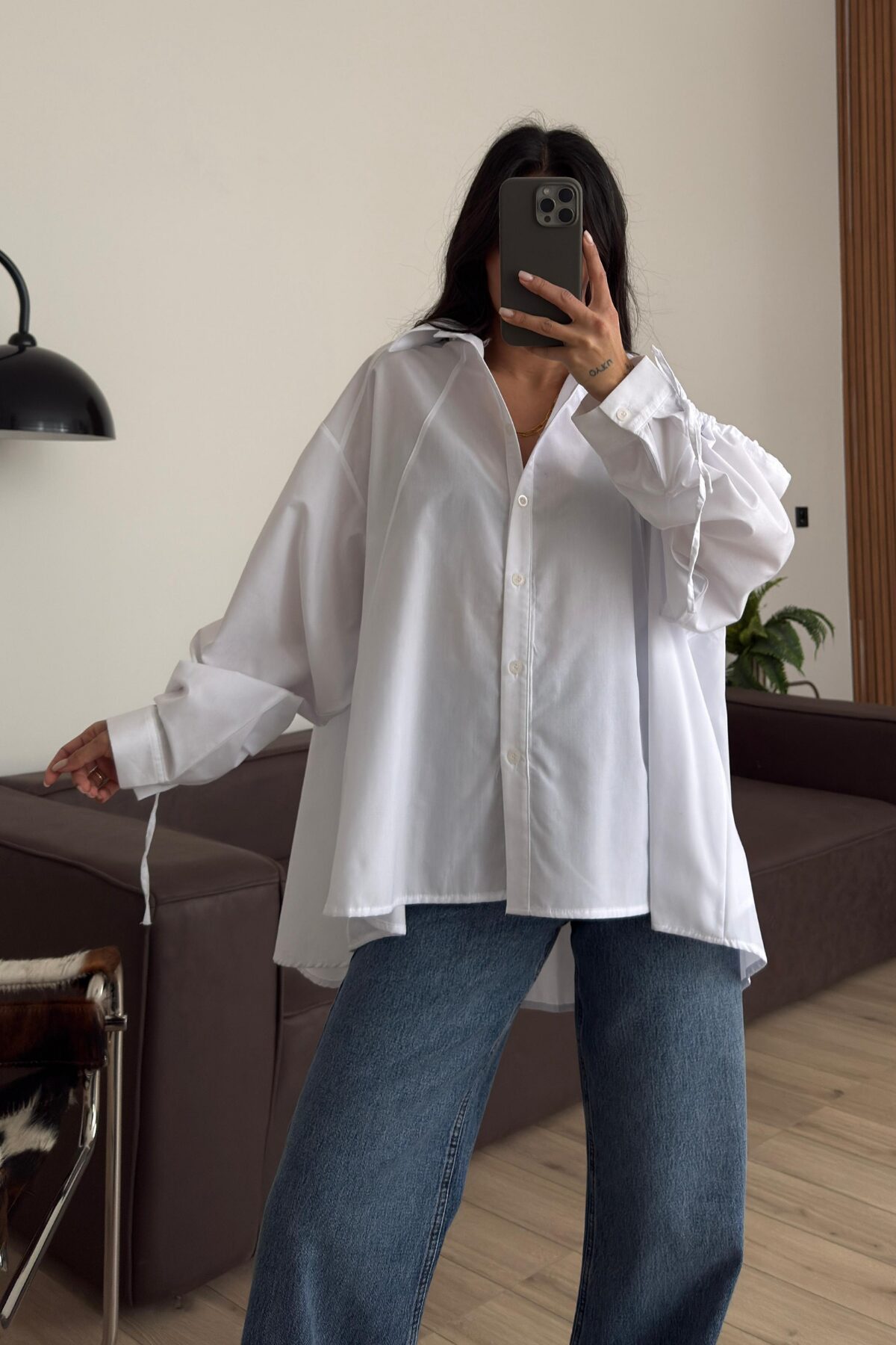 Kolları Ayarlanabilir Oversize Gömlek Beyaz
