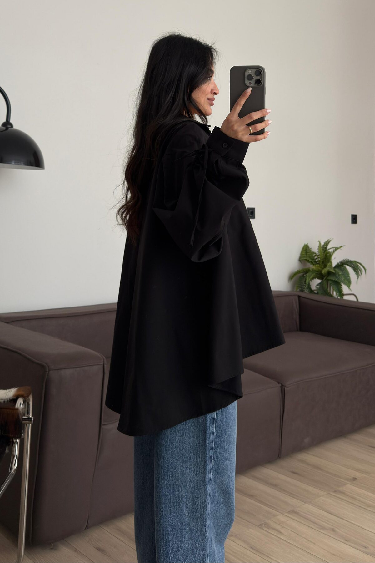 Kolları Ayarlanabilir Oversize Gömlek Siyah