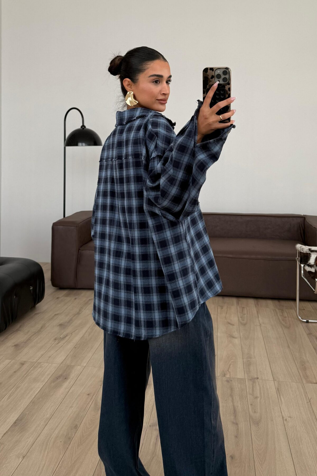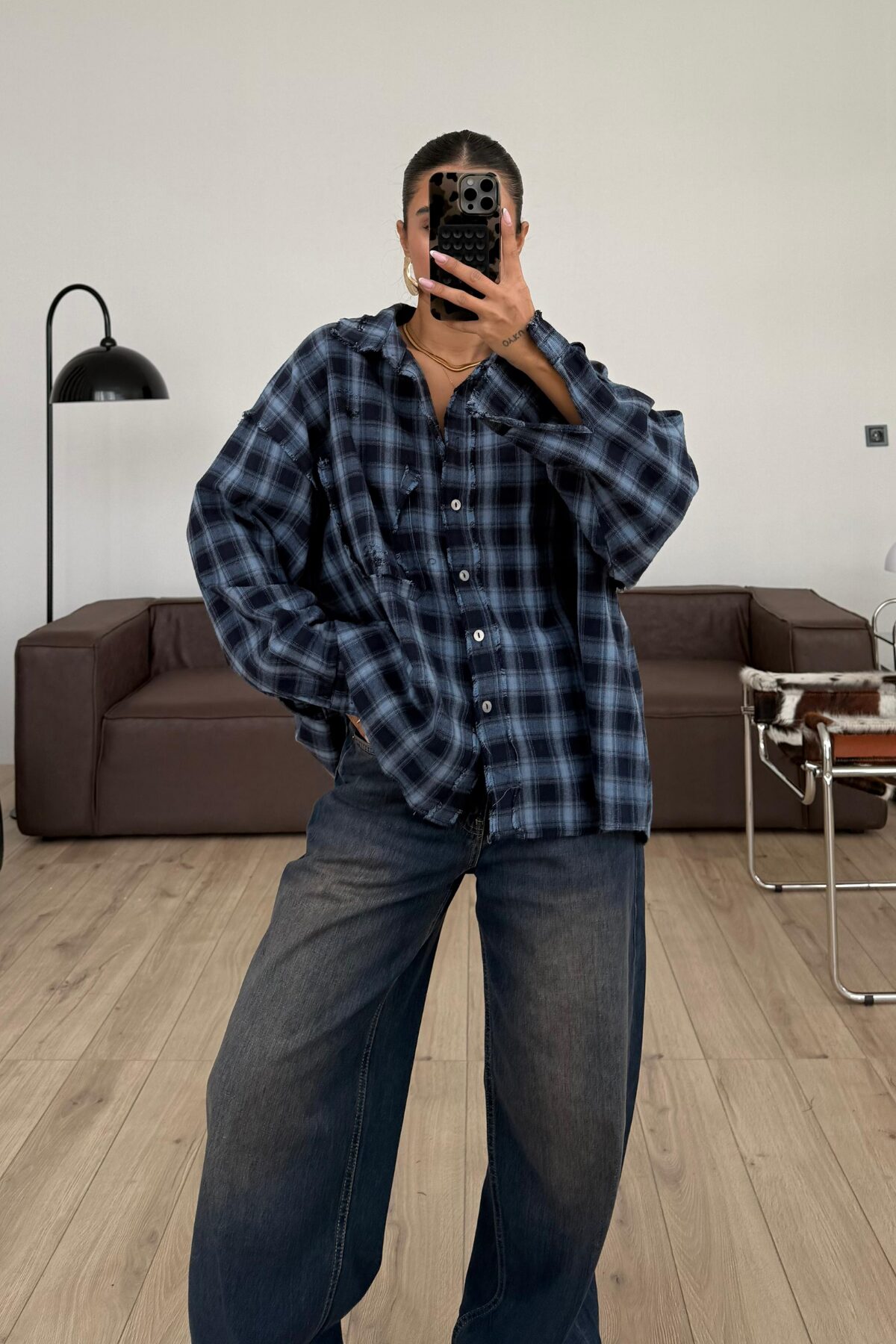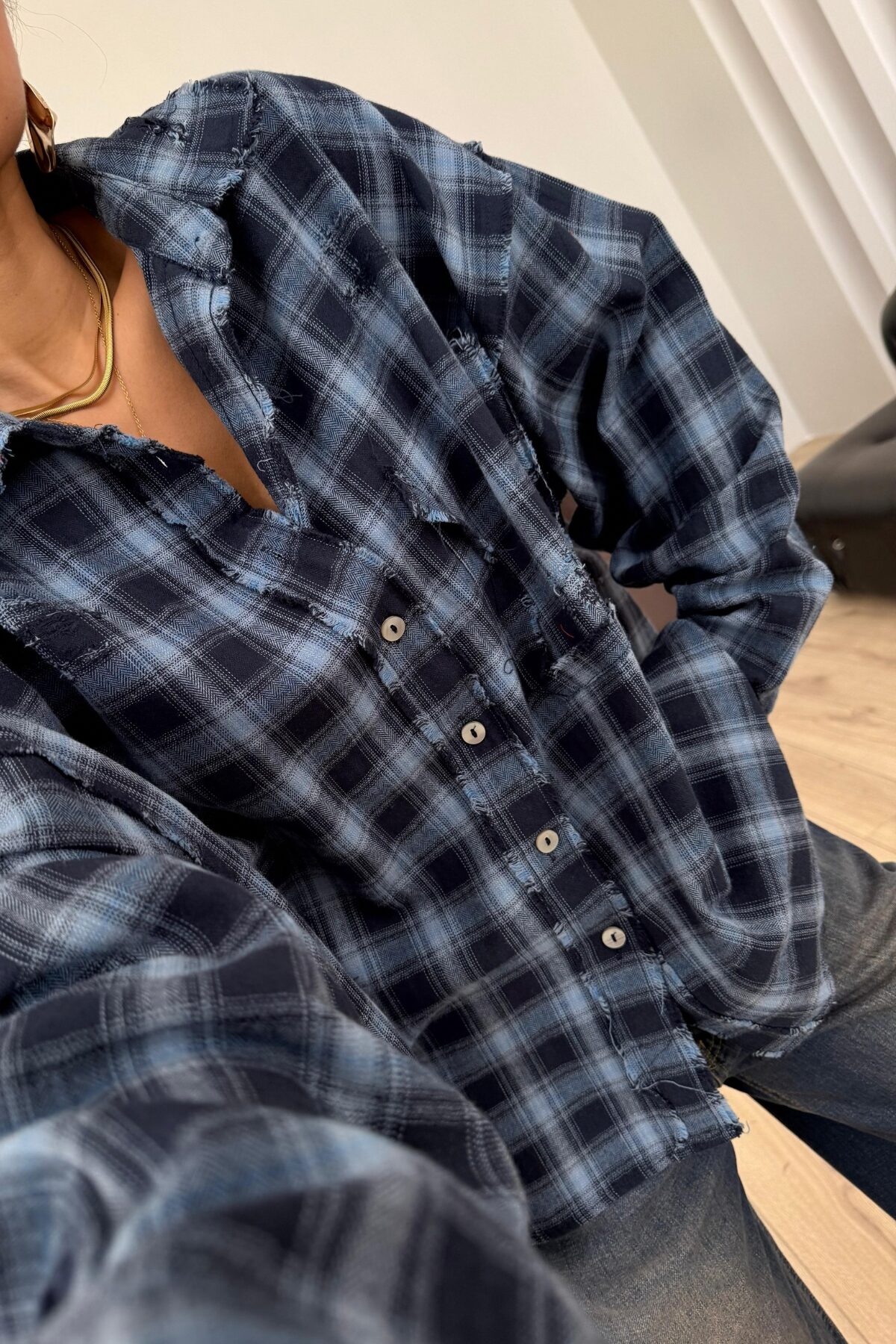 Lazer Kesim Ekose Gömlek Lacivert