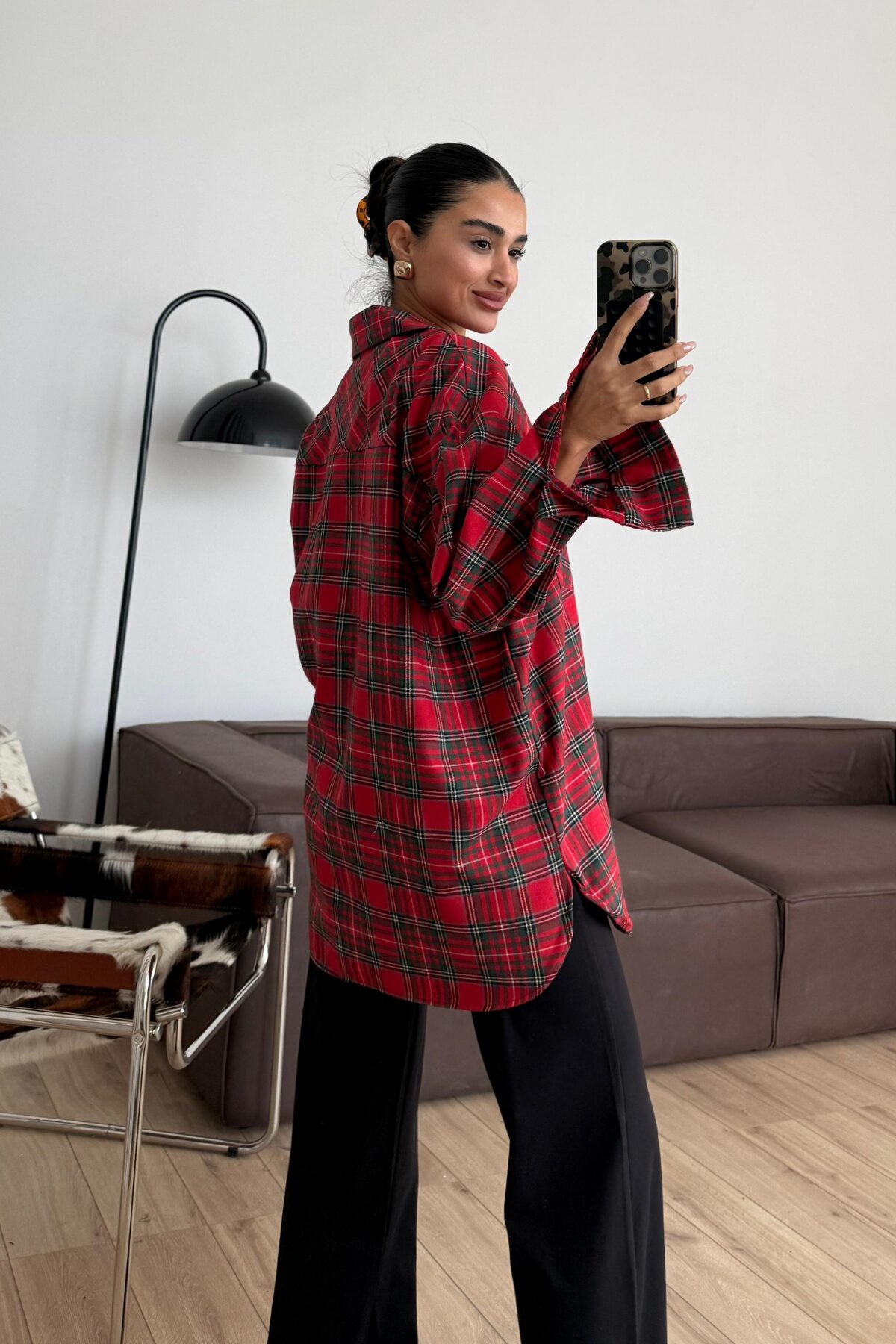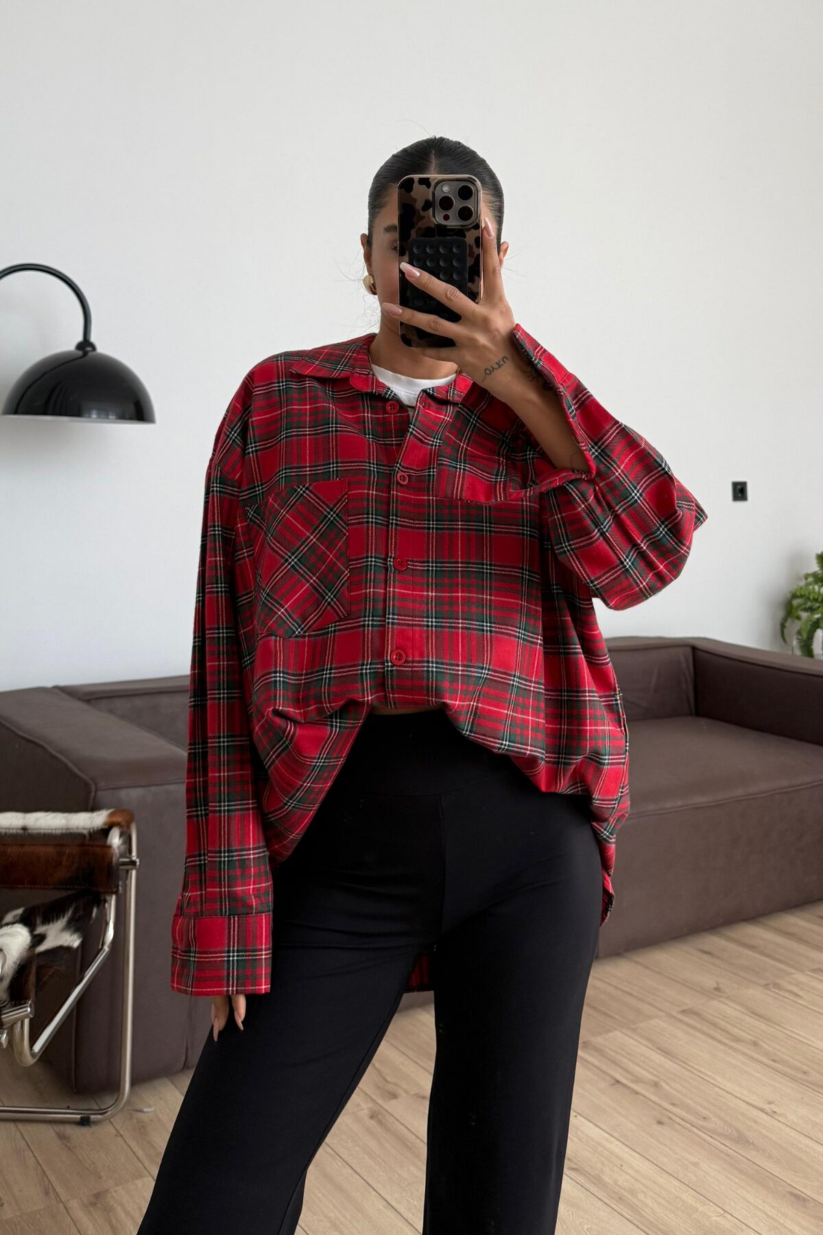Life Oversize Ekose Gömlek Kırmızı Yeşil