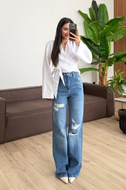 Shely Geniş Paça Mavi Jean