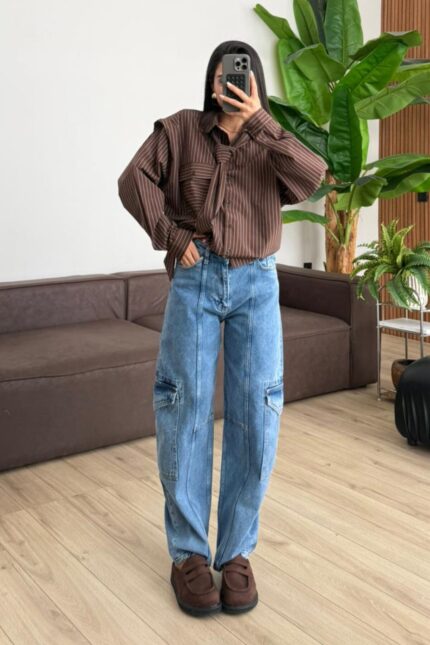 Verev Dikişli Kargo Cepli Mavi Jean