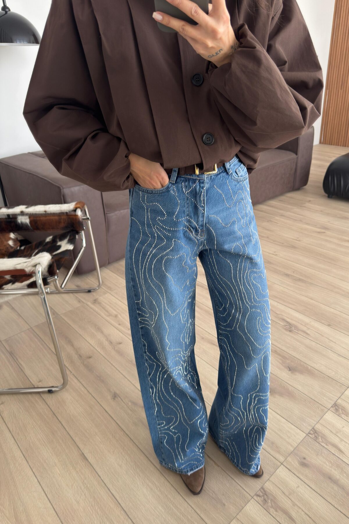 Cleo Dalgalı Taşlı Mavi Jean