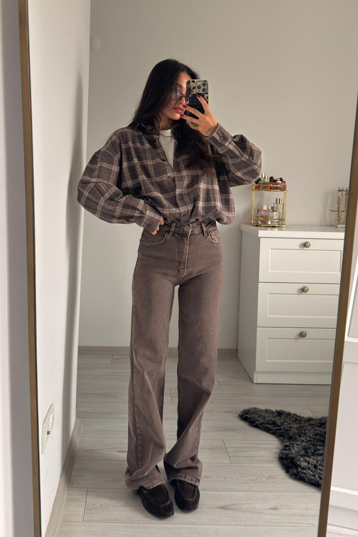 Diana Kahve Eskitme Wide Leg Jean
