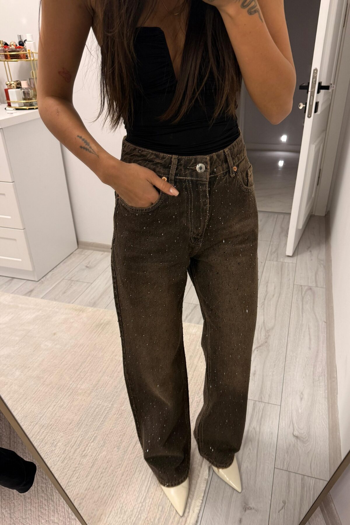 “Işıltılı Wide Leg Kahve Eskitme Jean” için yorum yapan ilk kişi siz olun