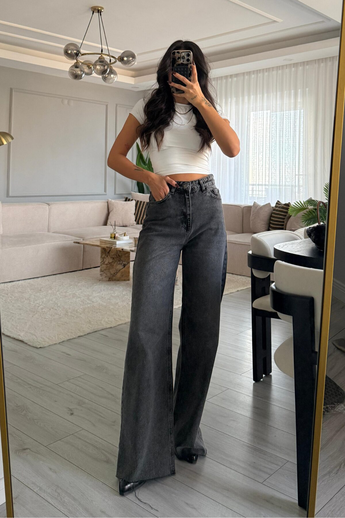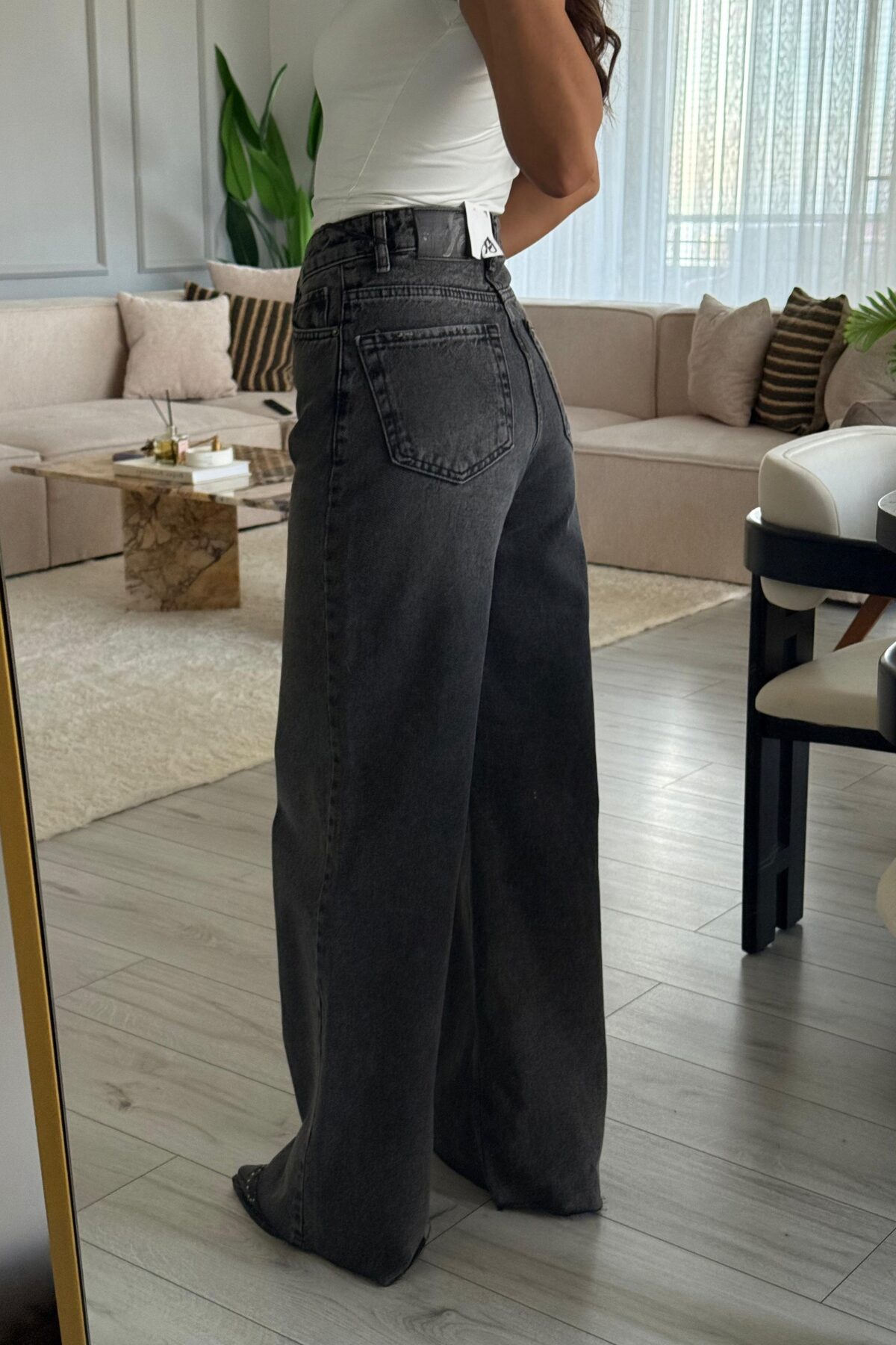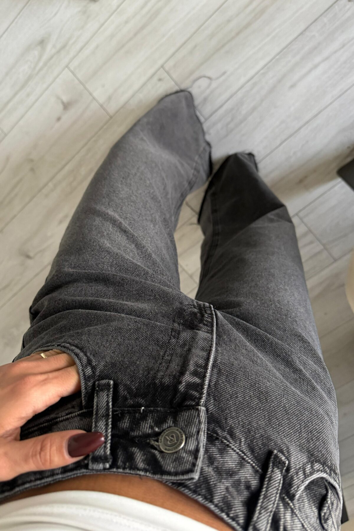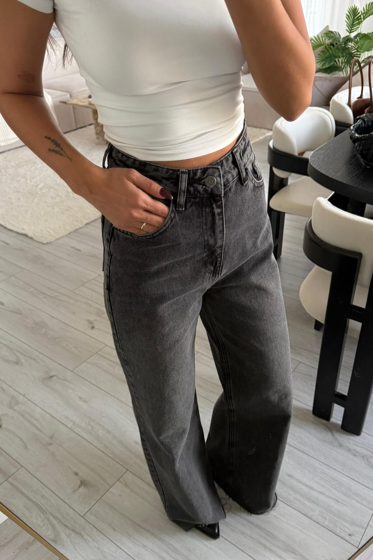 Kesik Paça Antrasit Eskitme Jean