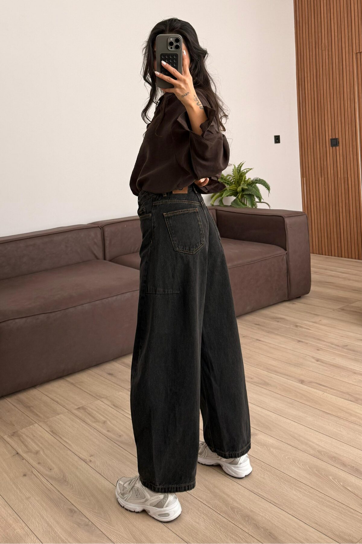 Verev Dikişli Baggy Koyu Antrasit Jean