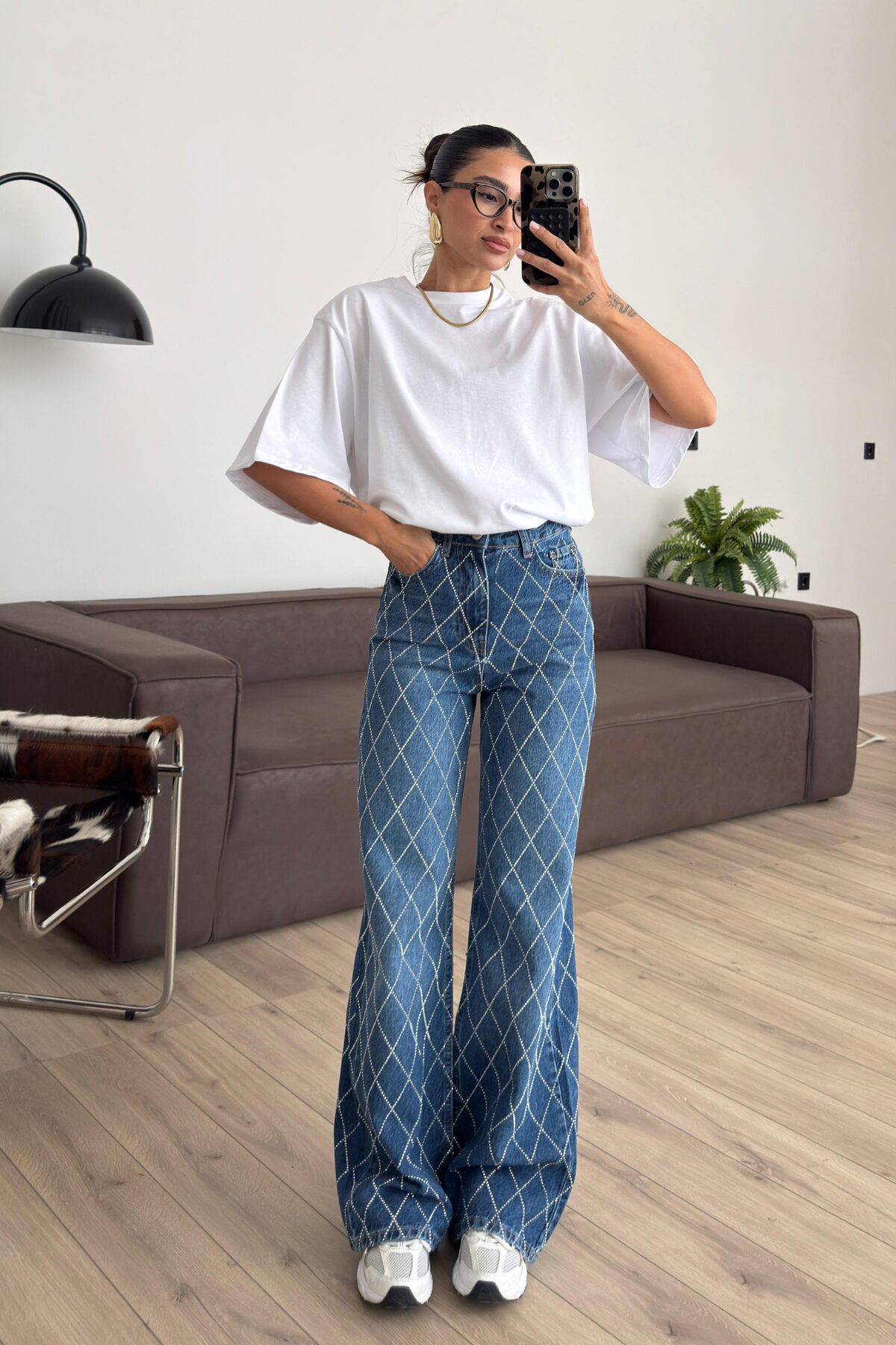 “Wide Leg Baklava Taşlı Mavi Jean” için yorum yapan ilk kişi siz olun