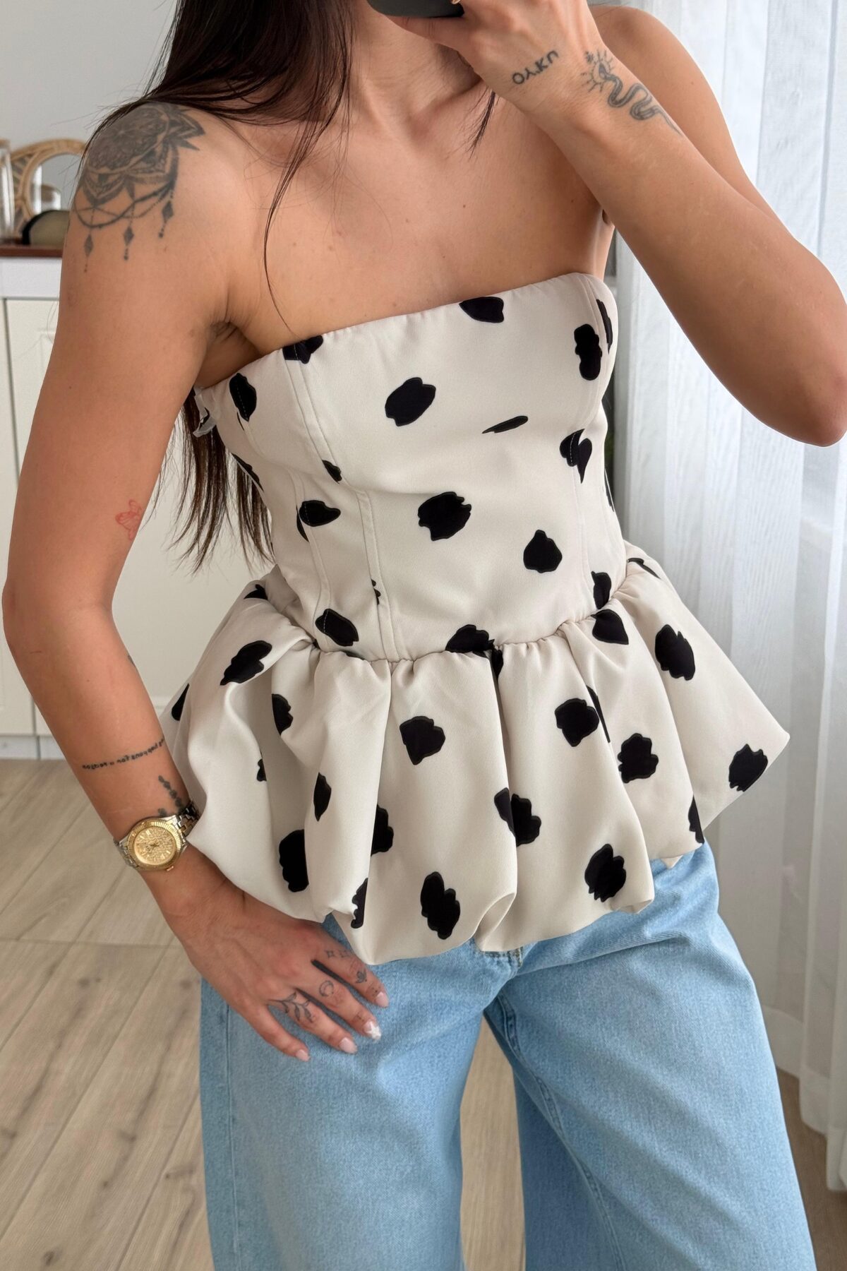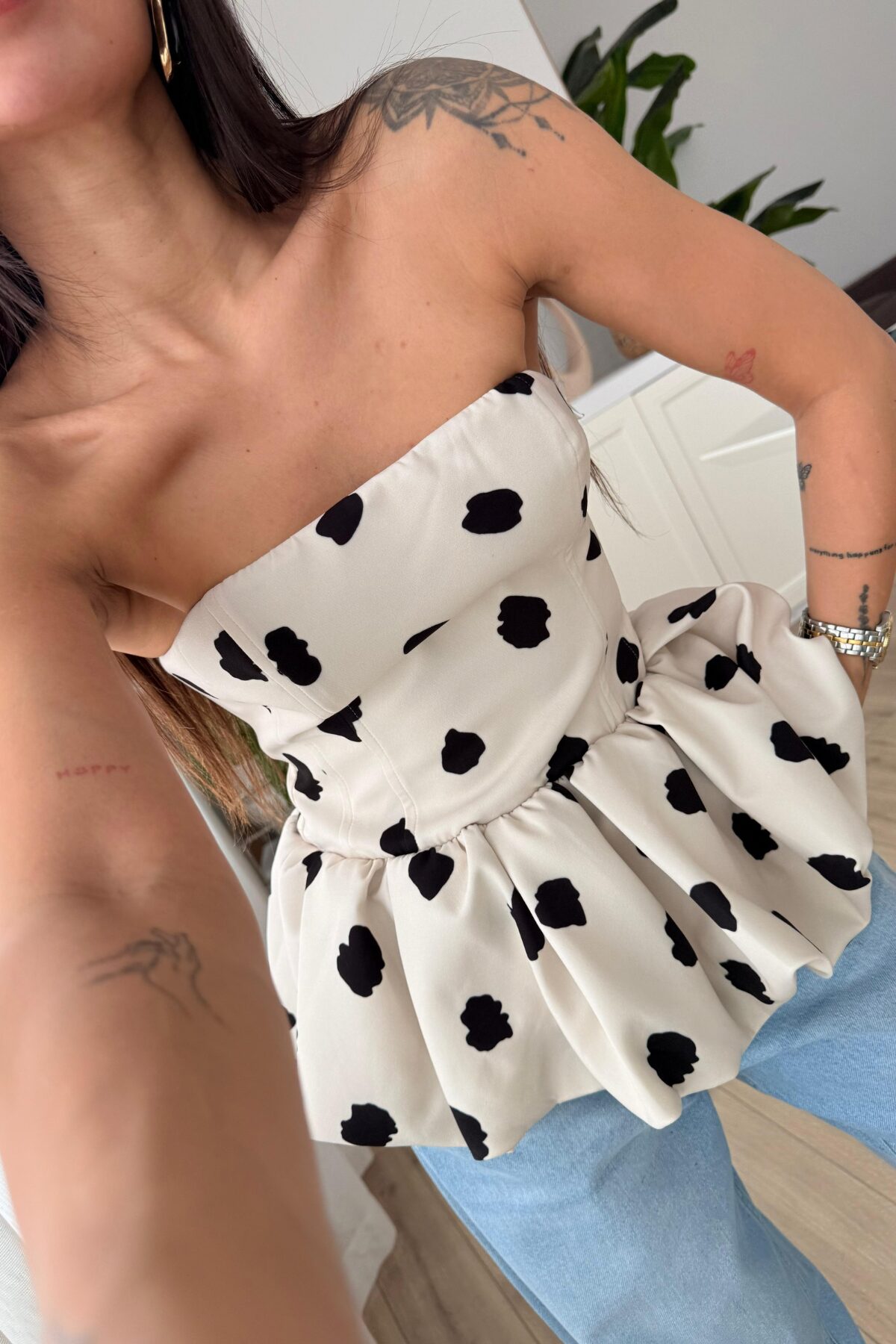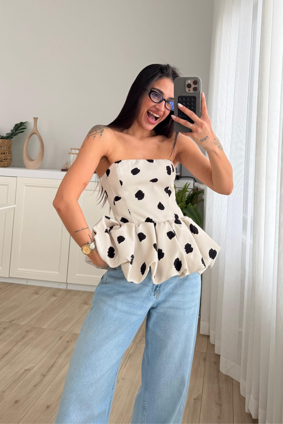 “Benekli Straplez Balon Bluz Krem” için yorum yapan ilk kişi siz olun