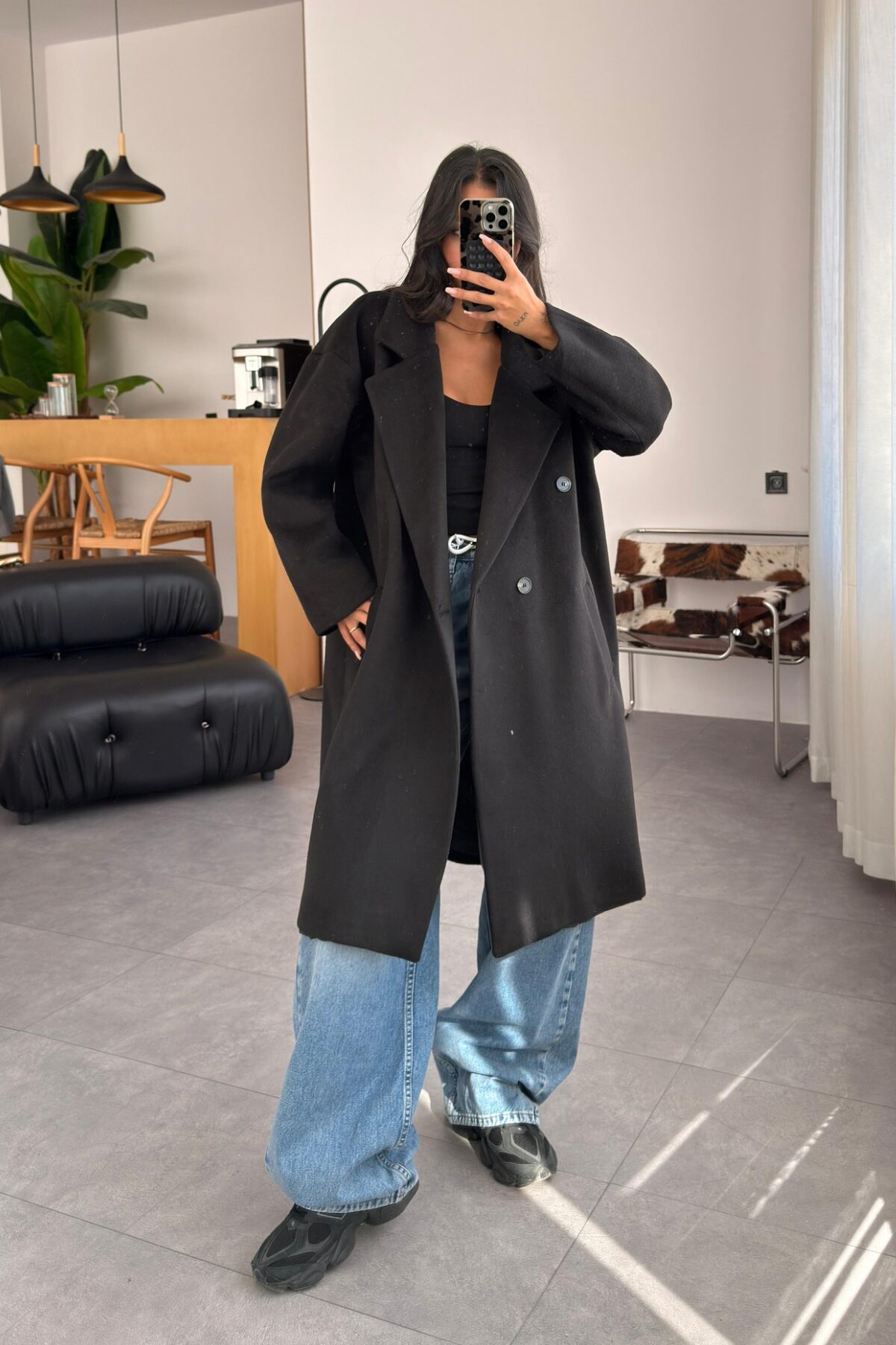 FF Siyah Yumuşak Kaşe Kaban Siyah