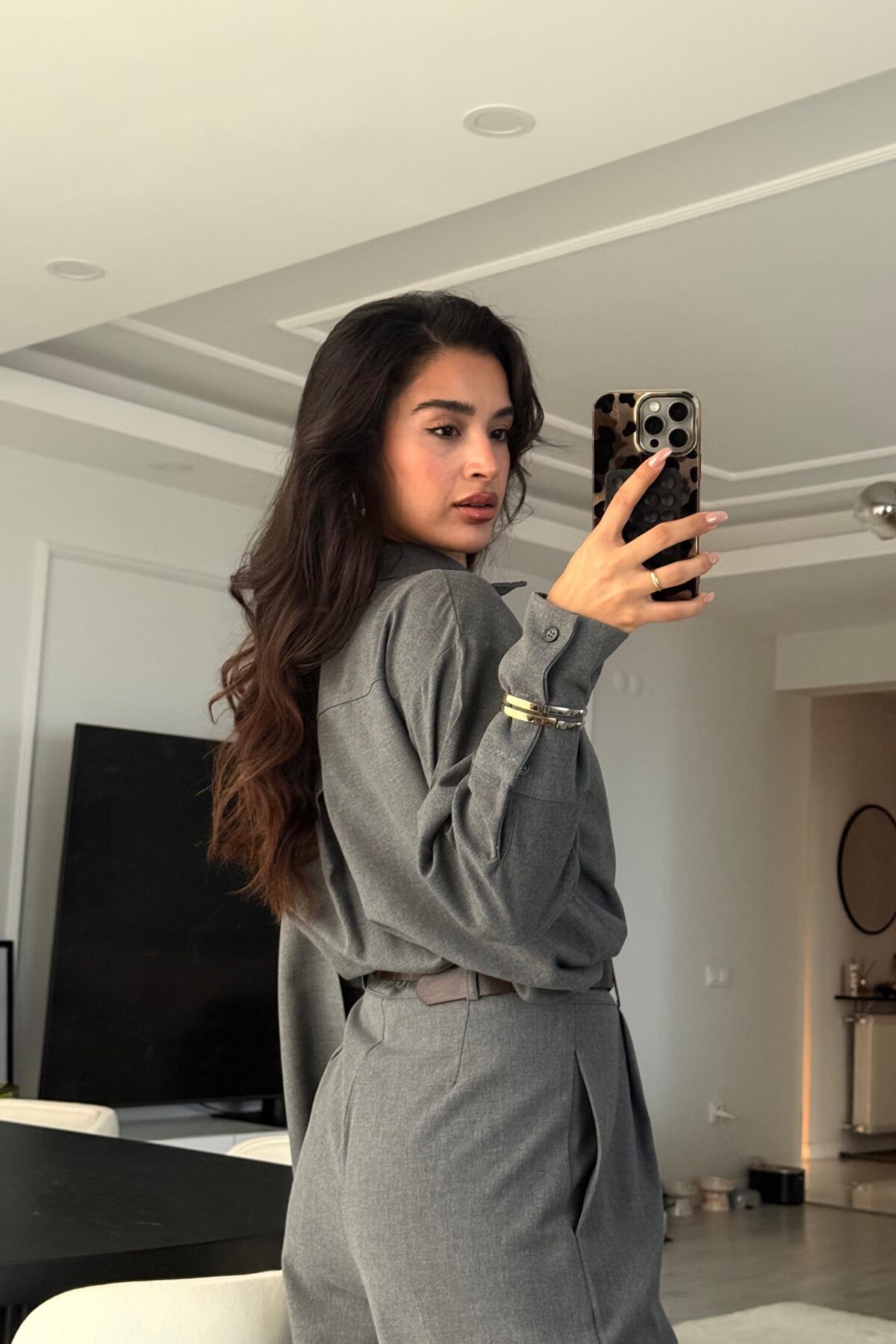 Manşet Kol Yakası Şallı Gömlek Takım Antrasit