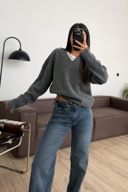 V Yaka Pinterest Yumuşak Kazak Antrasit