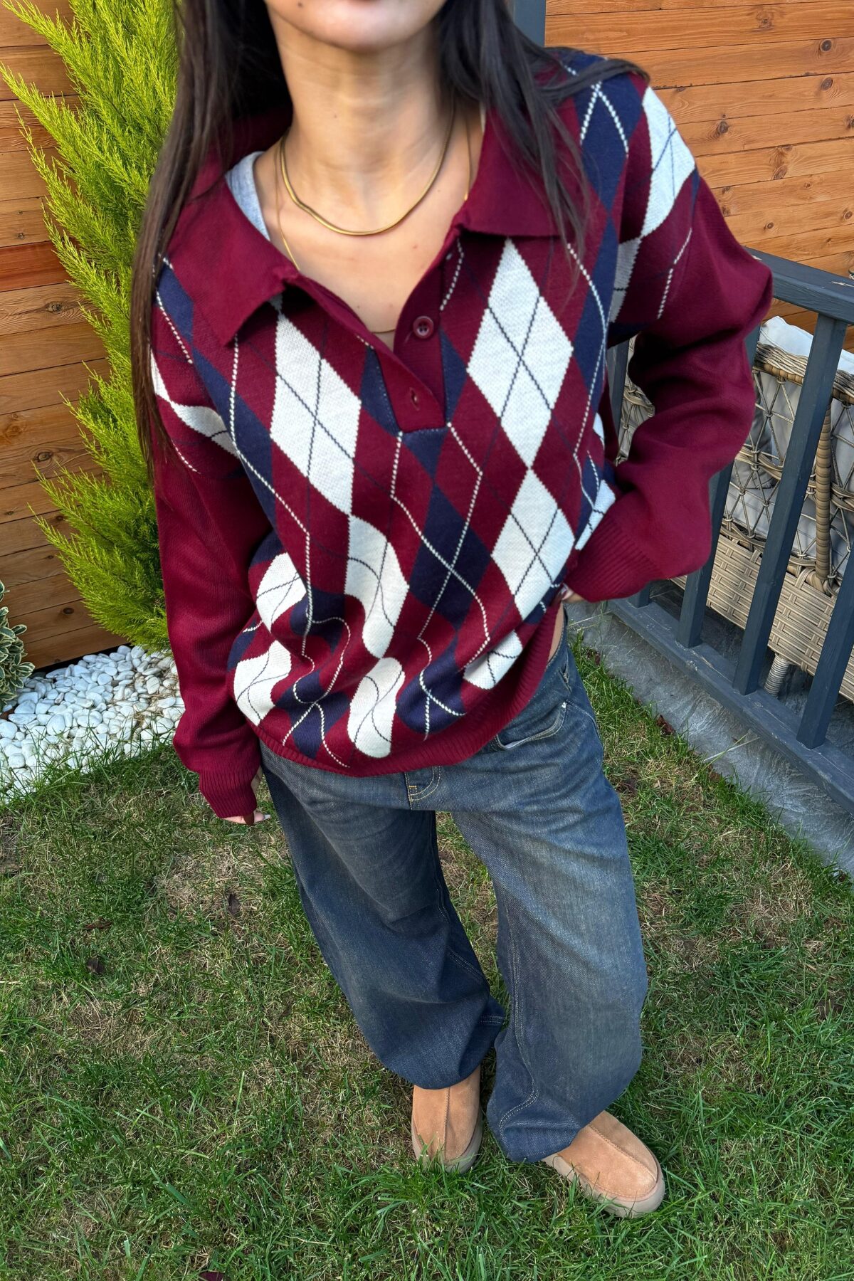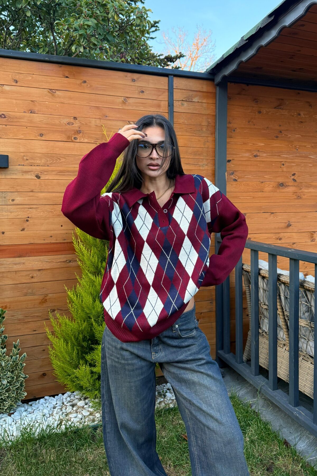 “Baklava Desenli Polo Yaka Kazak Bordo Lacivert” için yorum yapan ilk kişi siz olun