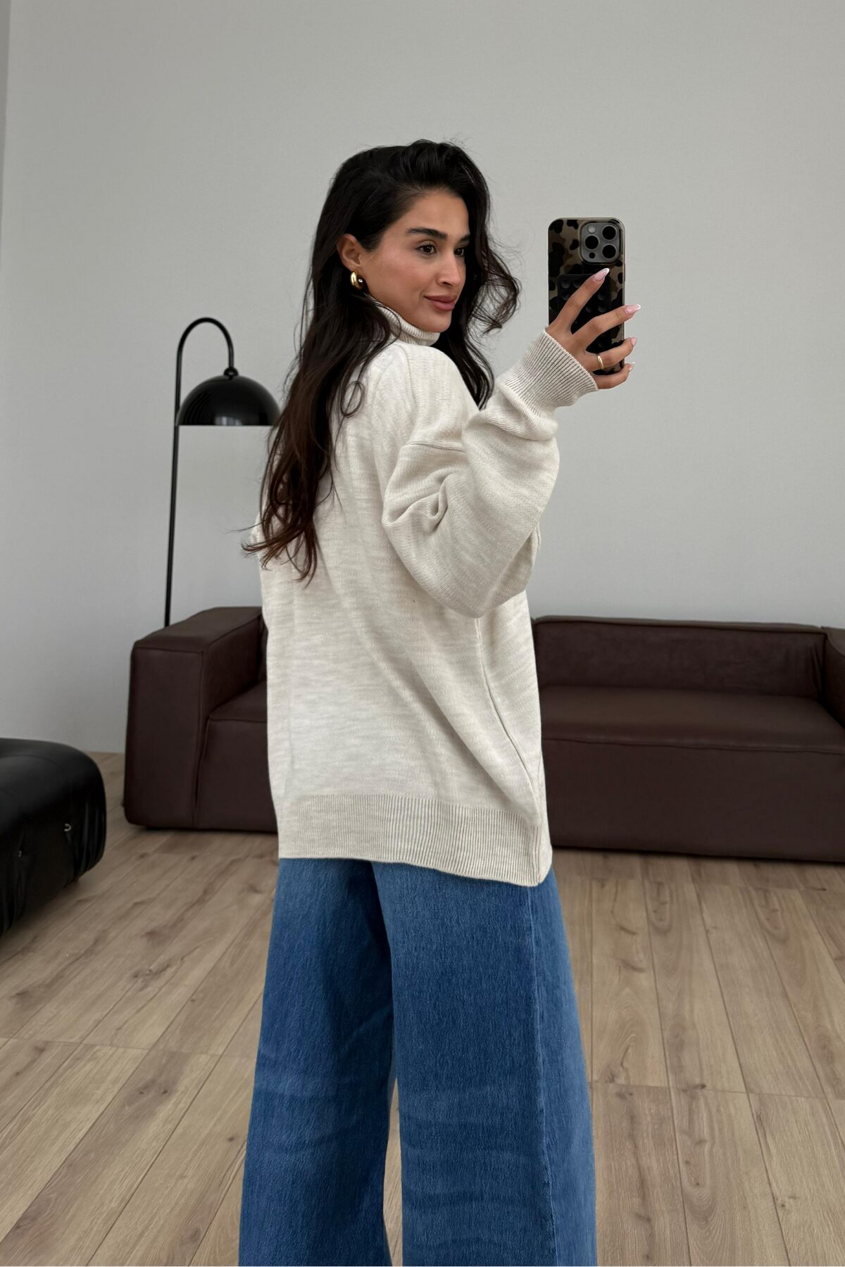 “Boğazlı Oversize Kazak Krem” için yorum yapan ilk kişi siz olun
