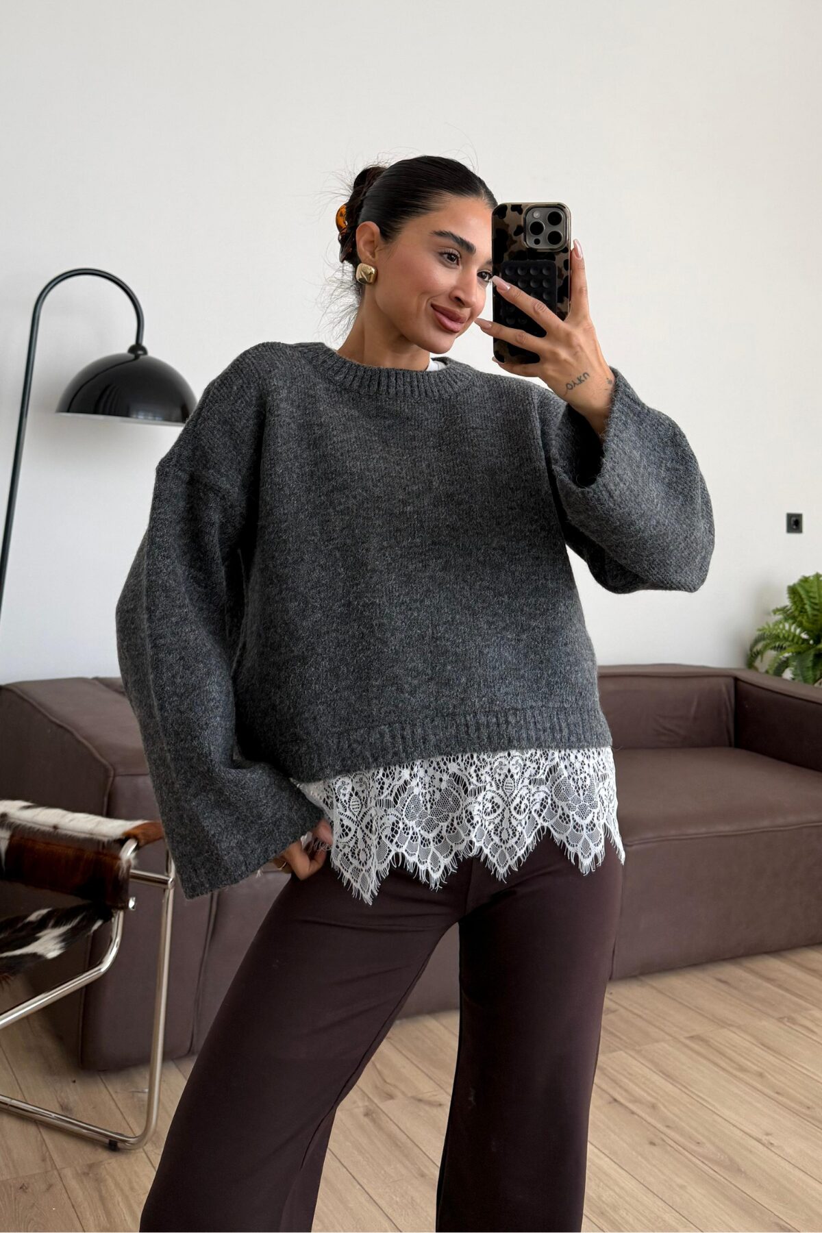“Dantel Detaylı Premium Kazak Antrasit” için yorum yapan ilk kişi siz olun