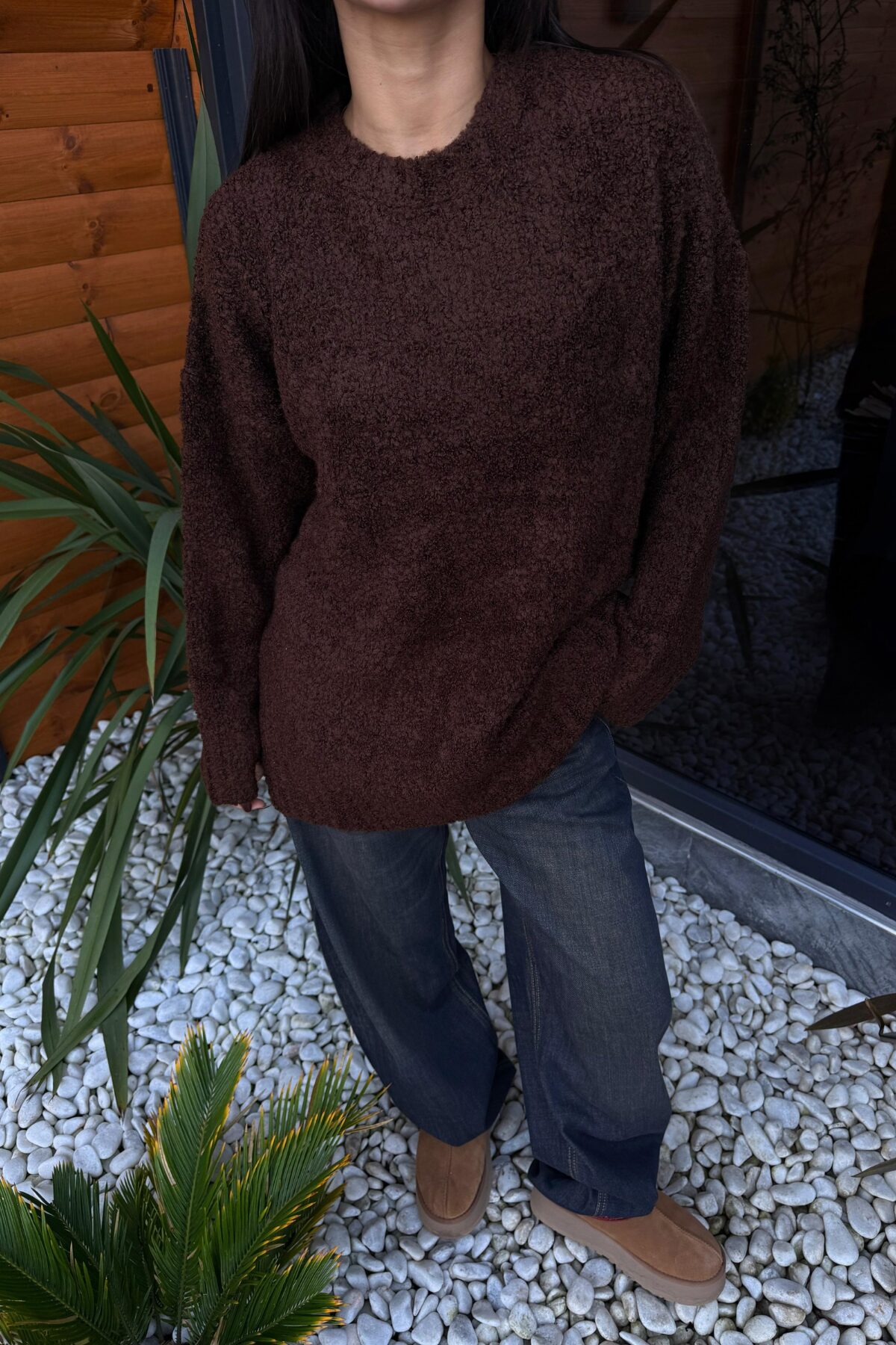 Dokulu Bisiklet Yaka Kazak Kahverengi