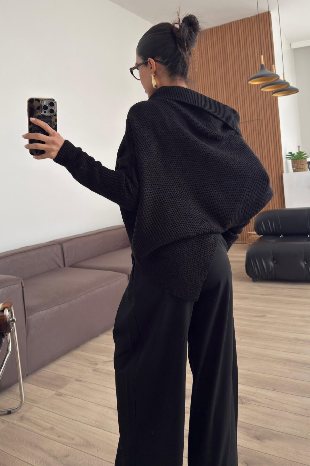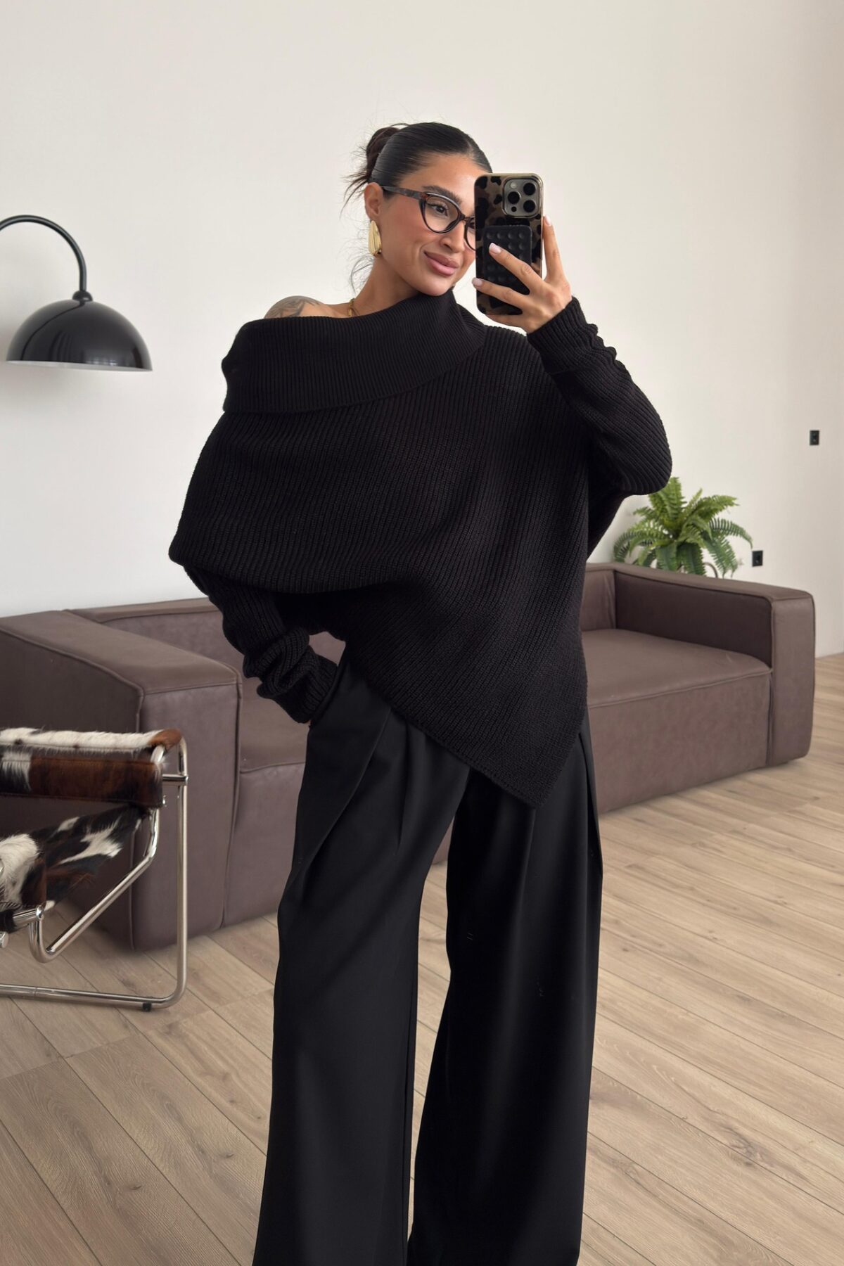 Geniş Boğazlı Asimetrik Kazak Siyah