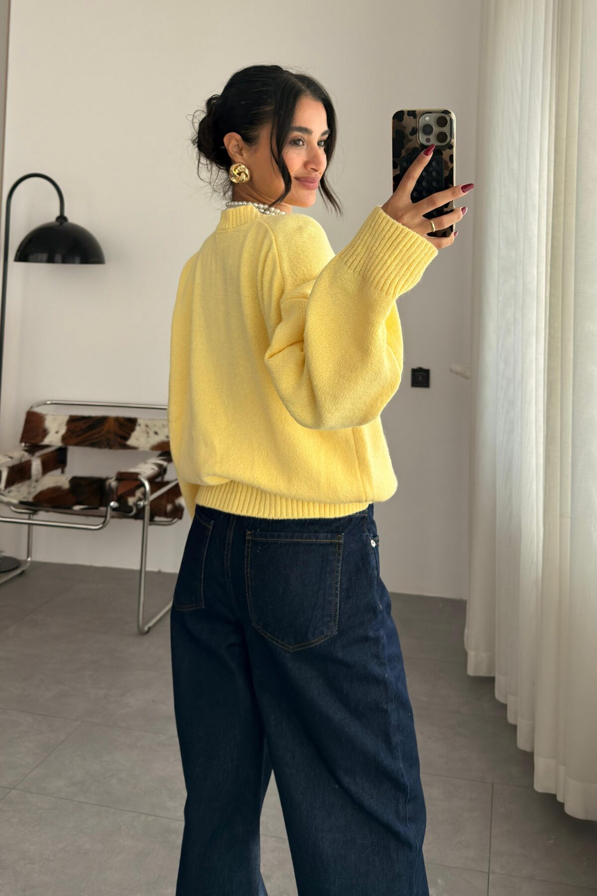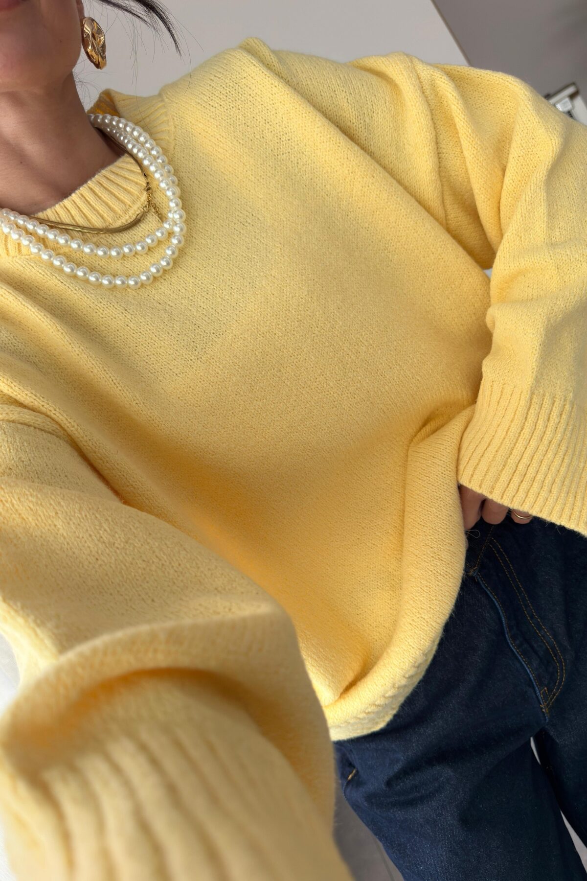 “Pia Oversize Örgü Kazak Sarı” için yorum yapan ilk kişi siz olun