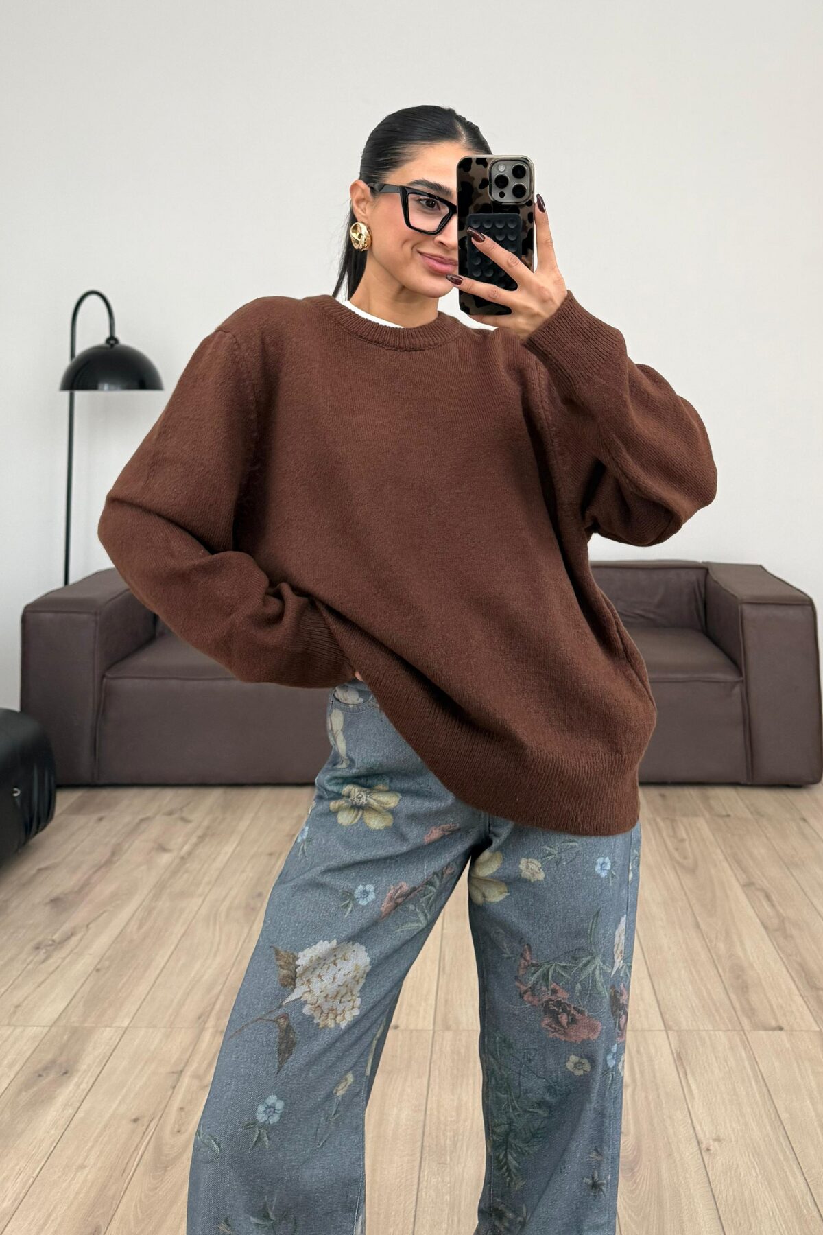 Yumuşak bisiklet Yaka Triko Kazak Kahverengi