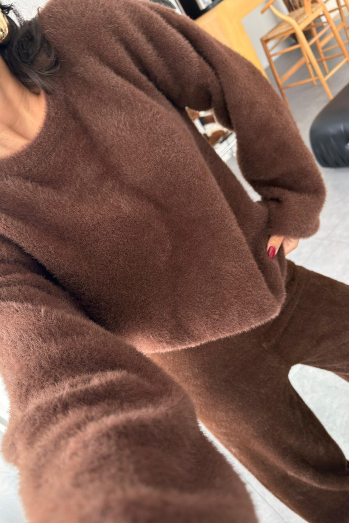 Yumuşak Dokulu Oversize Kazak Acı Kahve