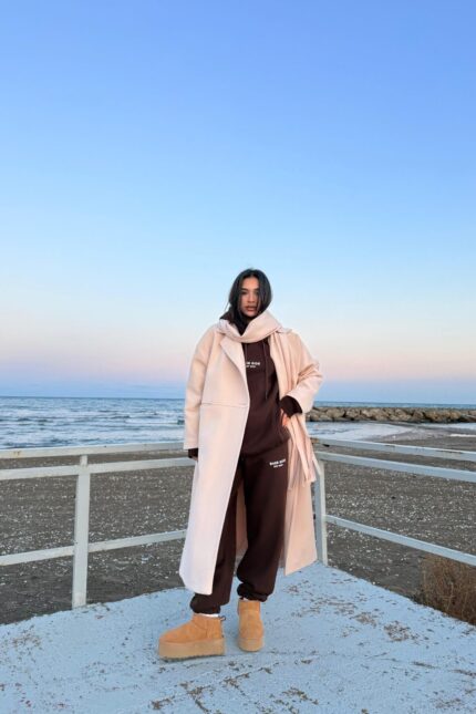 Balık Sırtı Dik Yaka Yumuşak Kaban Kahverengi
