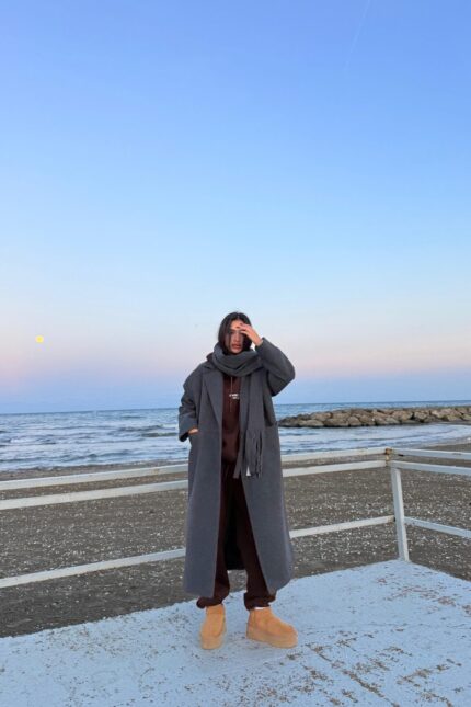 Balık Sırtı Dik Yaka Yumuşak Kaban Antrasit