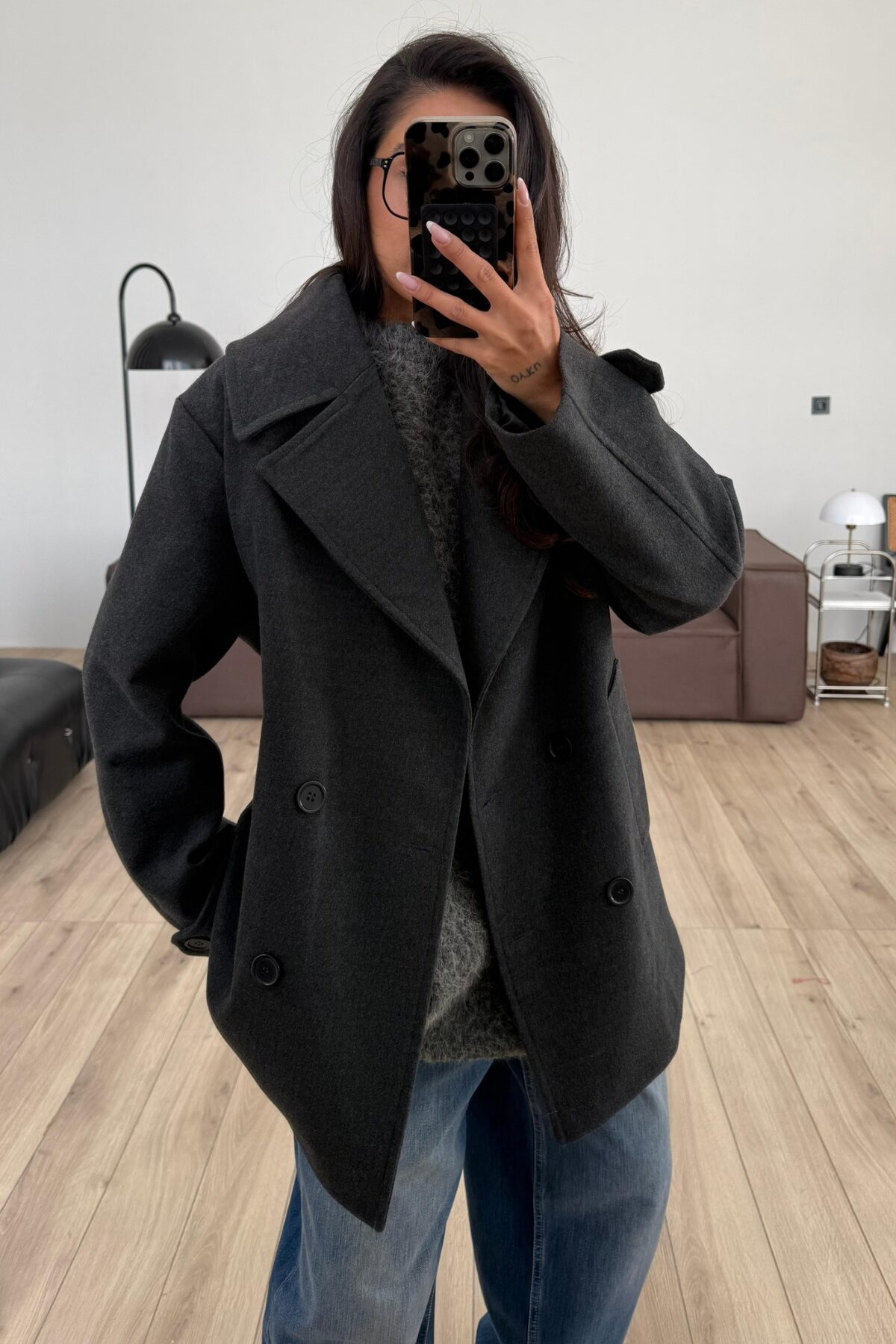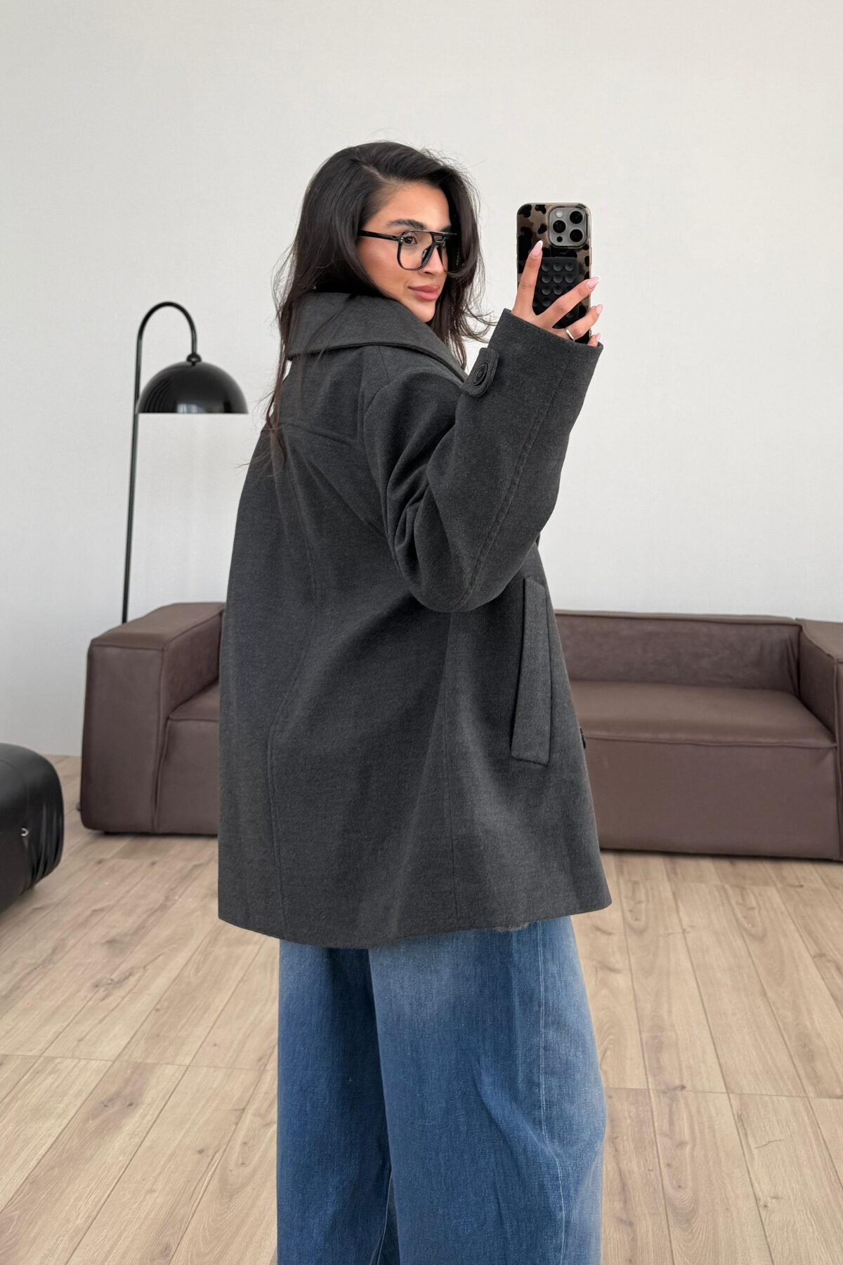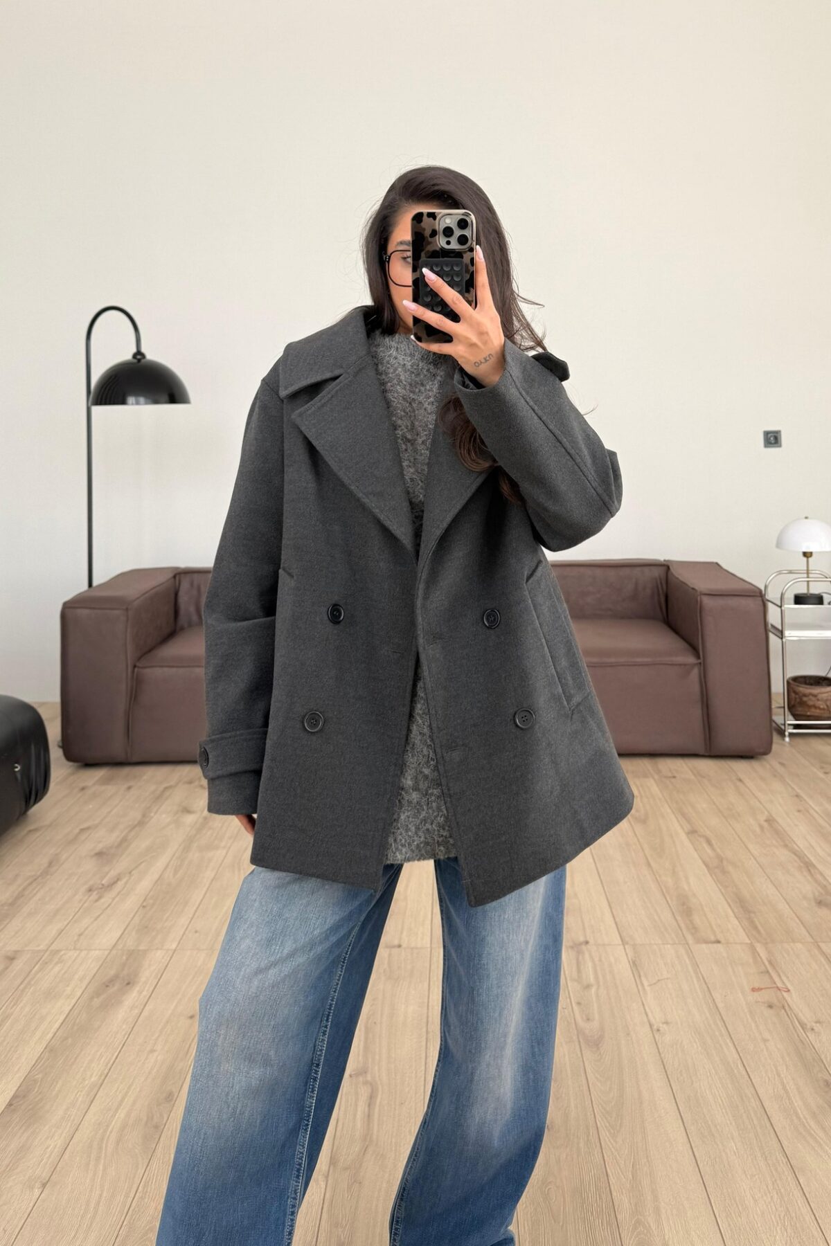 Bağlamalı Kaşe Kısa Kaban Antrasit